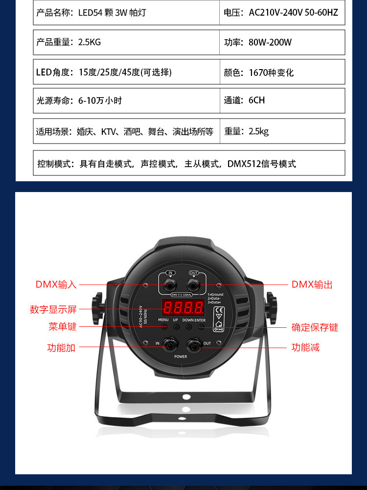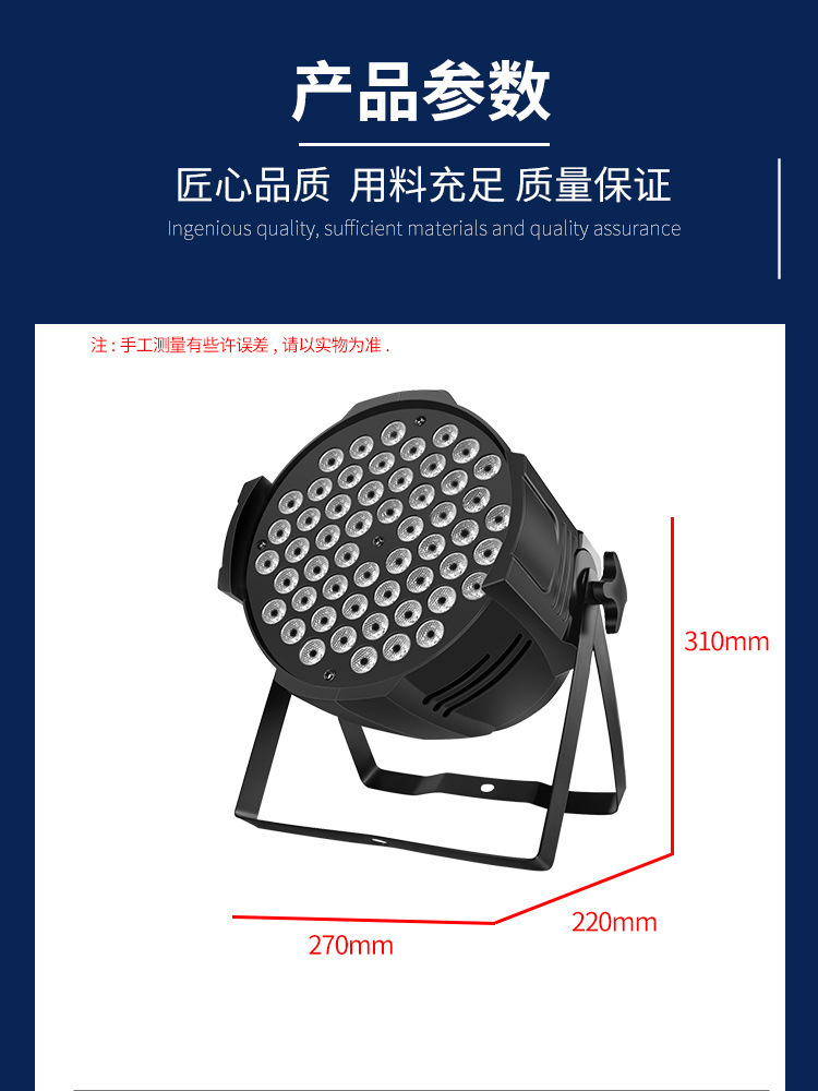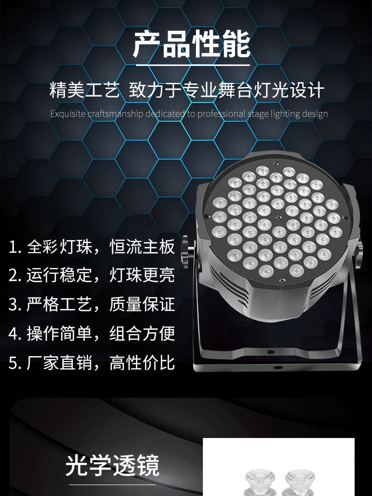 54pcs 3W 파 빛 풀 컬러 웨딩 바 워시 라이트 LED 다채로운 페이스 라이트 라이브 룸 음악 축제 무대 조명