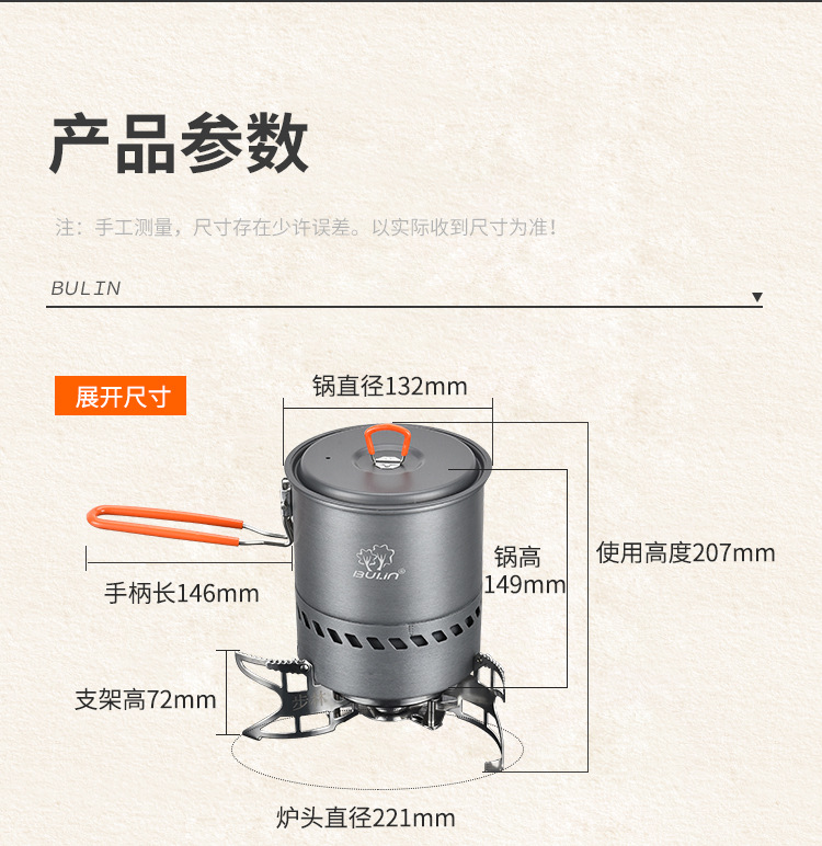 户外有风险,野外露营使用炊具炉具需要注意安全,远离爆炸易燃物品,远离小孩老人及行动不便人士.感谢您的支持