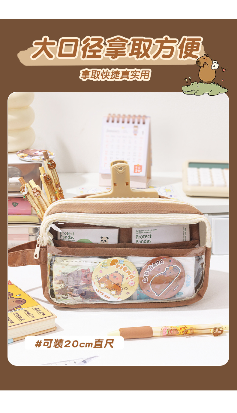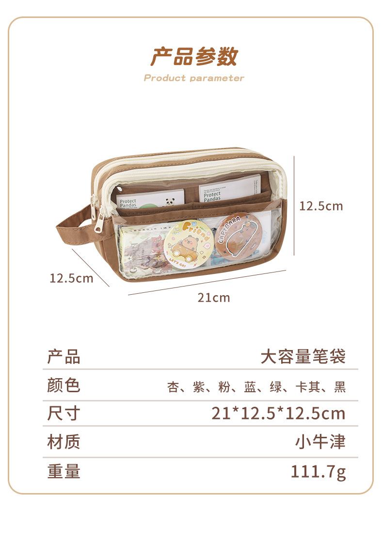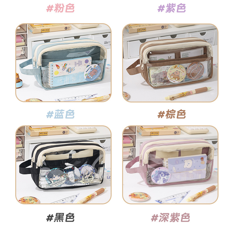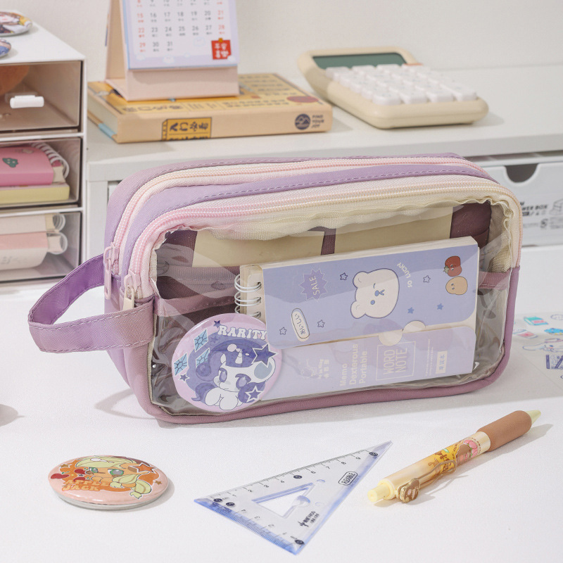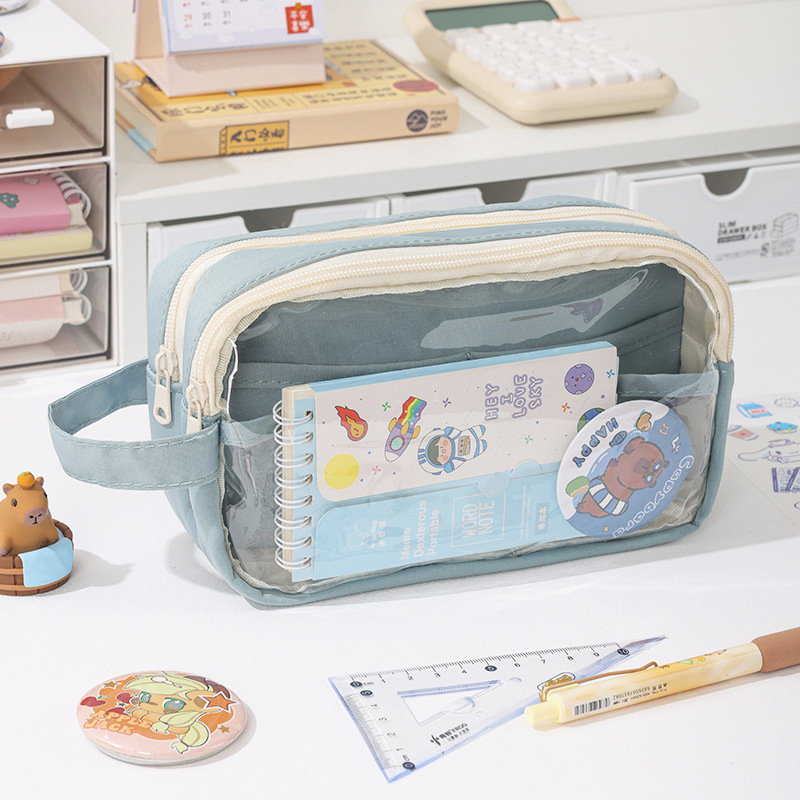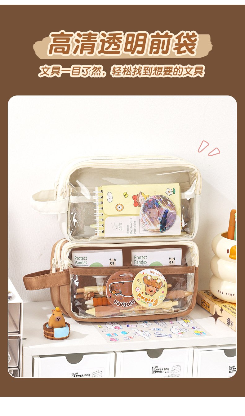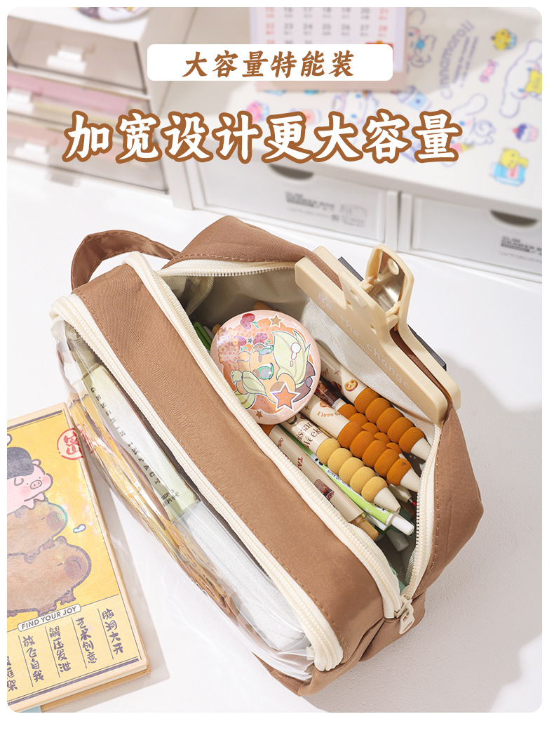 투명 연필 가방 중학교 초등학생 가방 문구 간단하고 고급스러운 기능 대용량 소녀 일본식 연필 가방