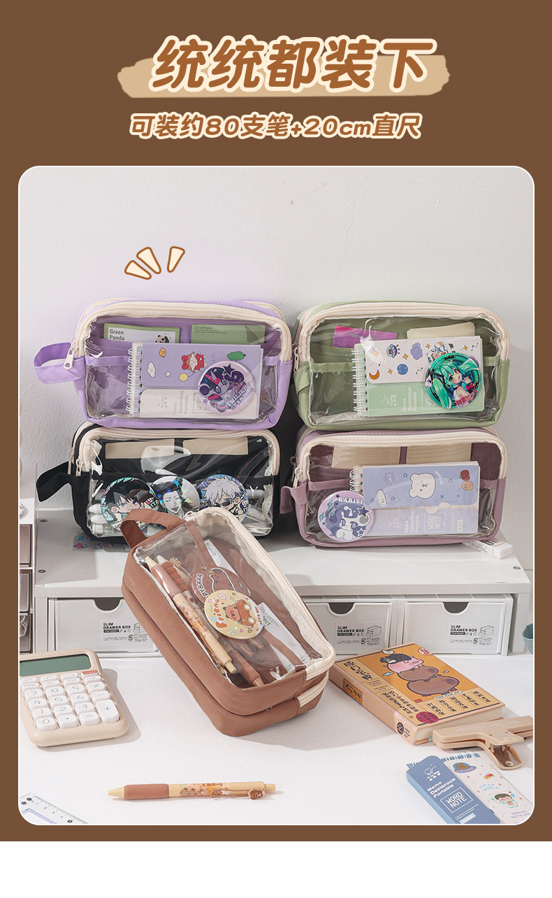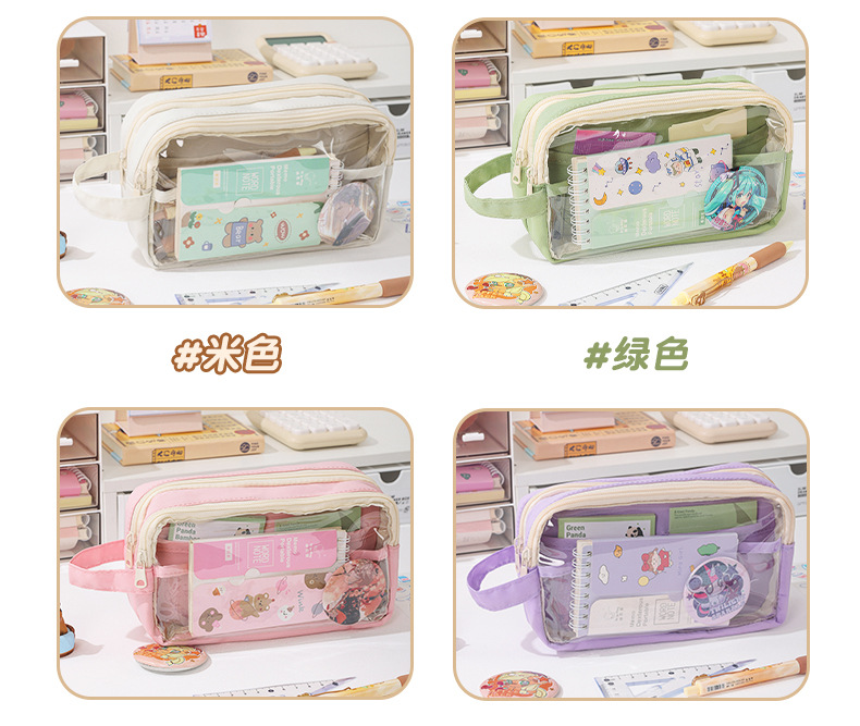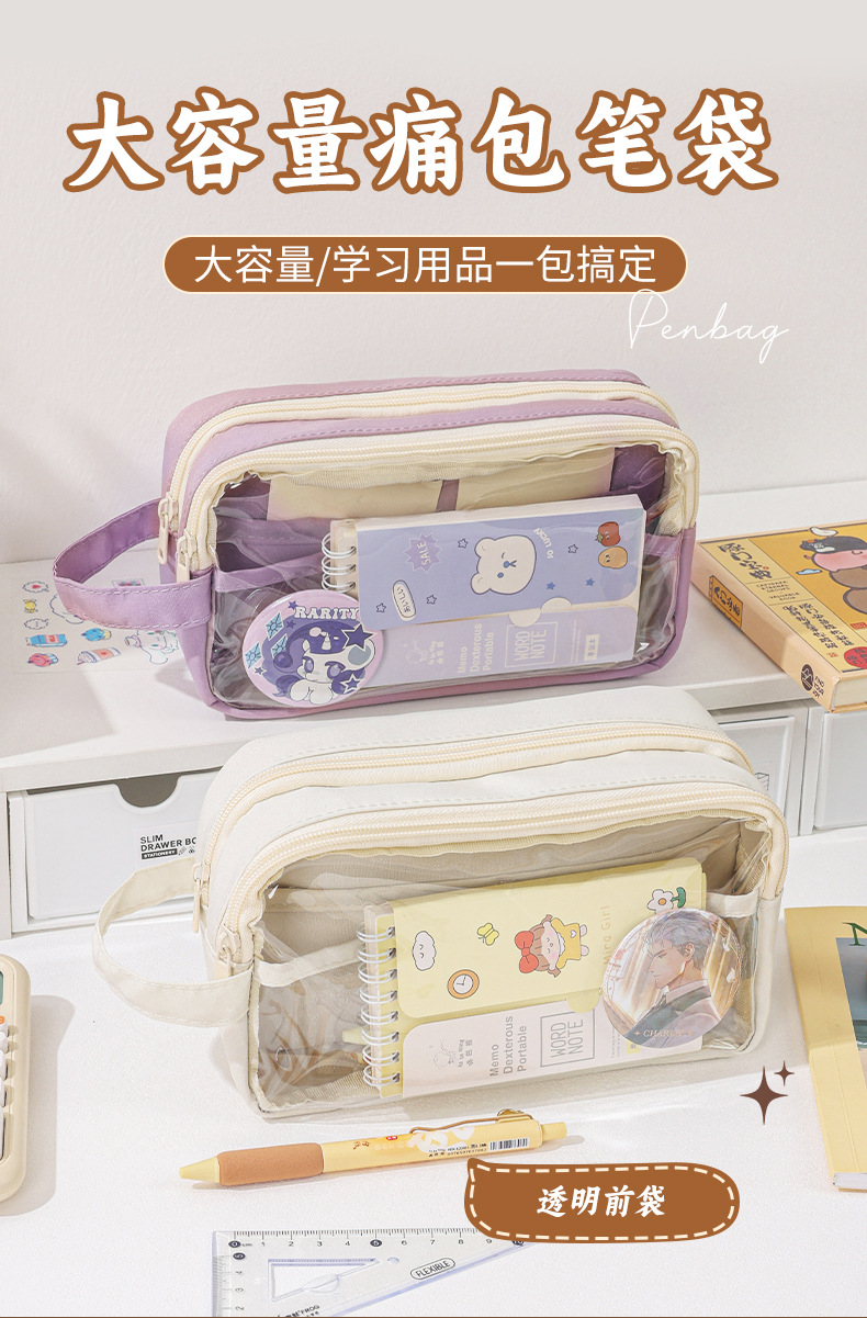투명 연필 가방 중학교 초등학생 가방 문구 간단하고 고급스러운 기능 대용량 소녀 일본식 연필 가방스토어 가기