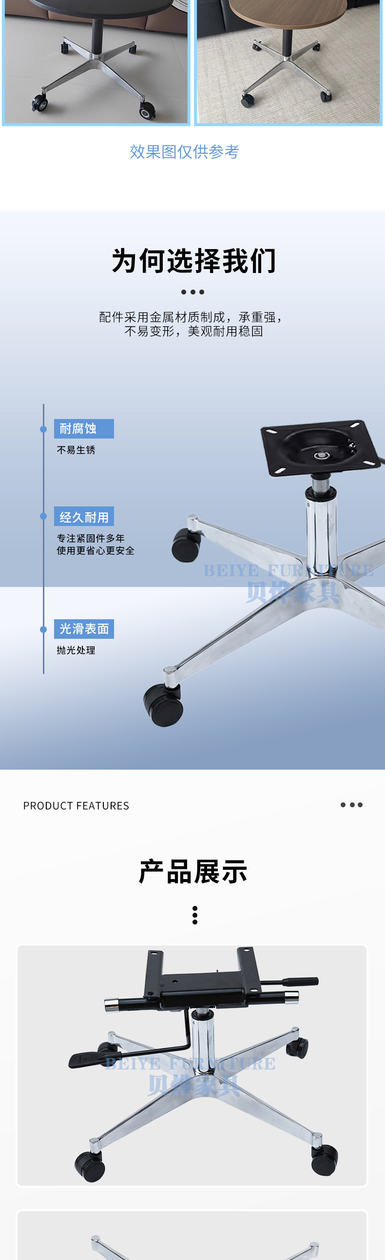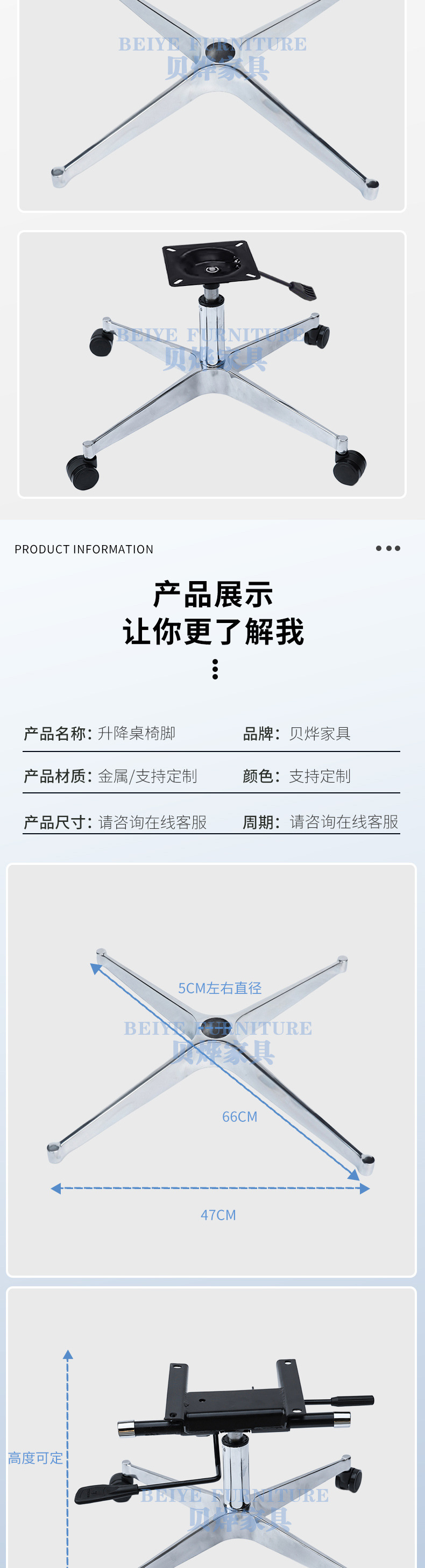 크로스 알루미늄 합금 4성 발 컴퓨터 의자 사무실 호텔 레저 의자 액세서리 리프팅 테이블 기본 삼각대
