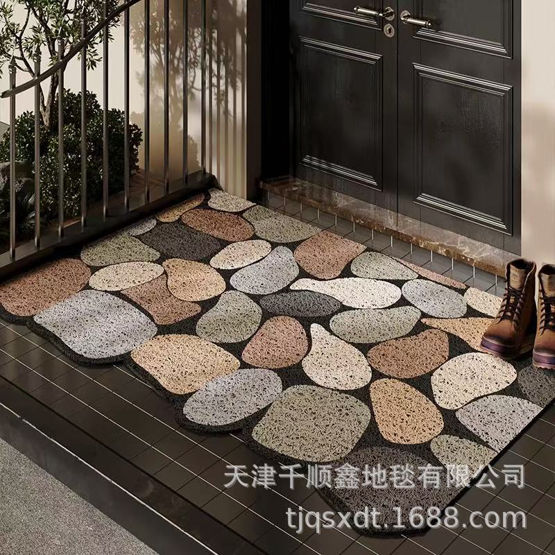 돌담 실크 후프 발 매트, 출입문 카펫, 출입문 진흙 긁힘, 절단 가능, 미끄럼 방지, 먼지 방지, 관리가 쉬운 도어 매트