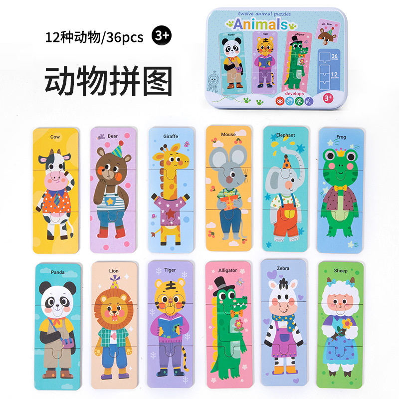 어린이 초급 철 상자 3-in-1 퍼즐 스토리 퍼즐 블록 논리적 사고 조기 교육 계발 퍼즐 장난감스토어 가기