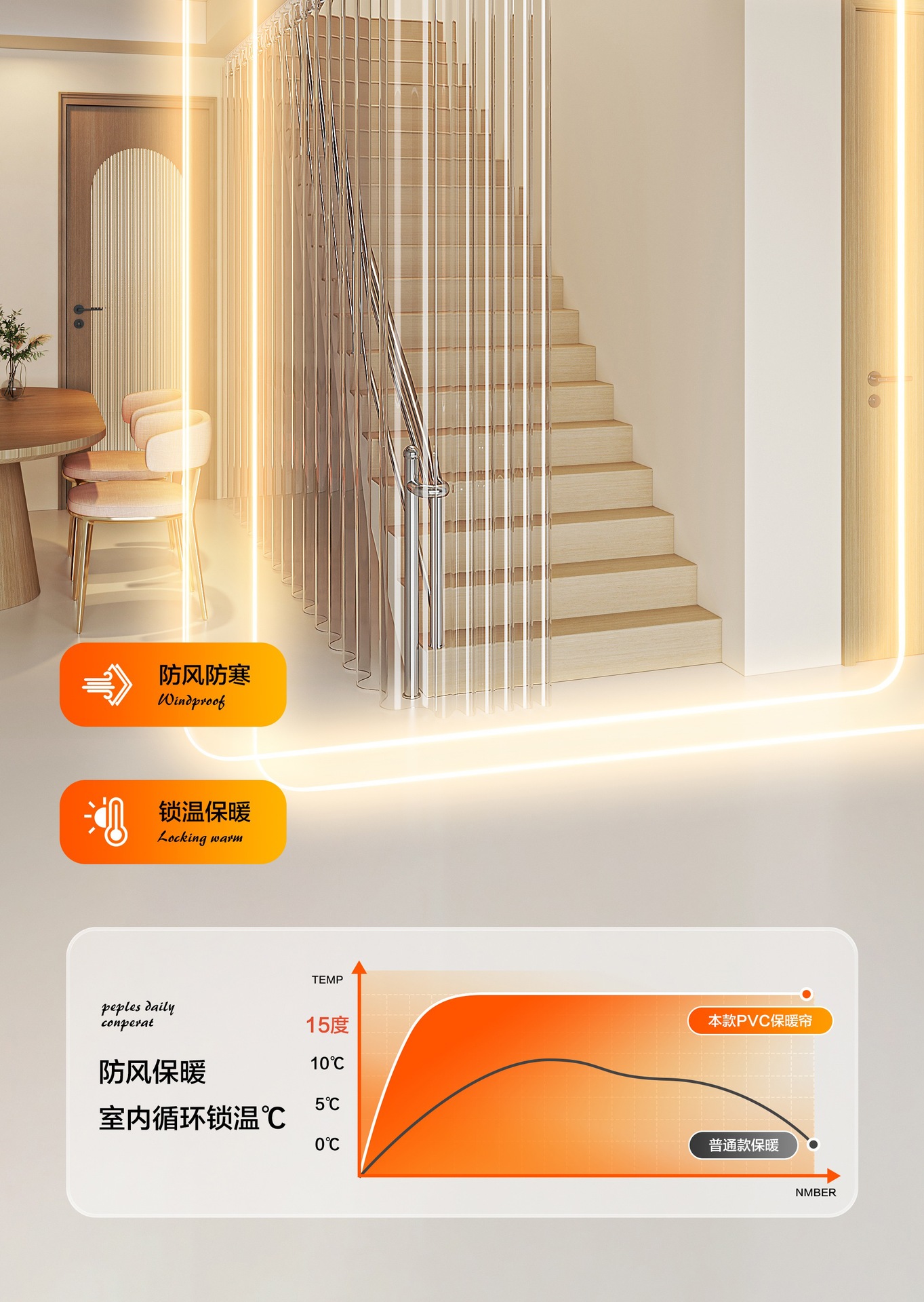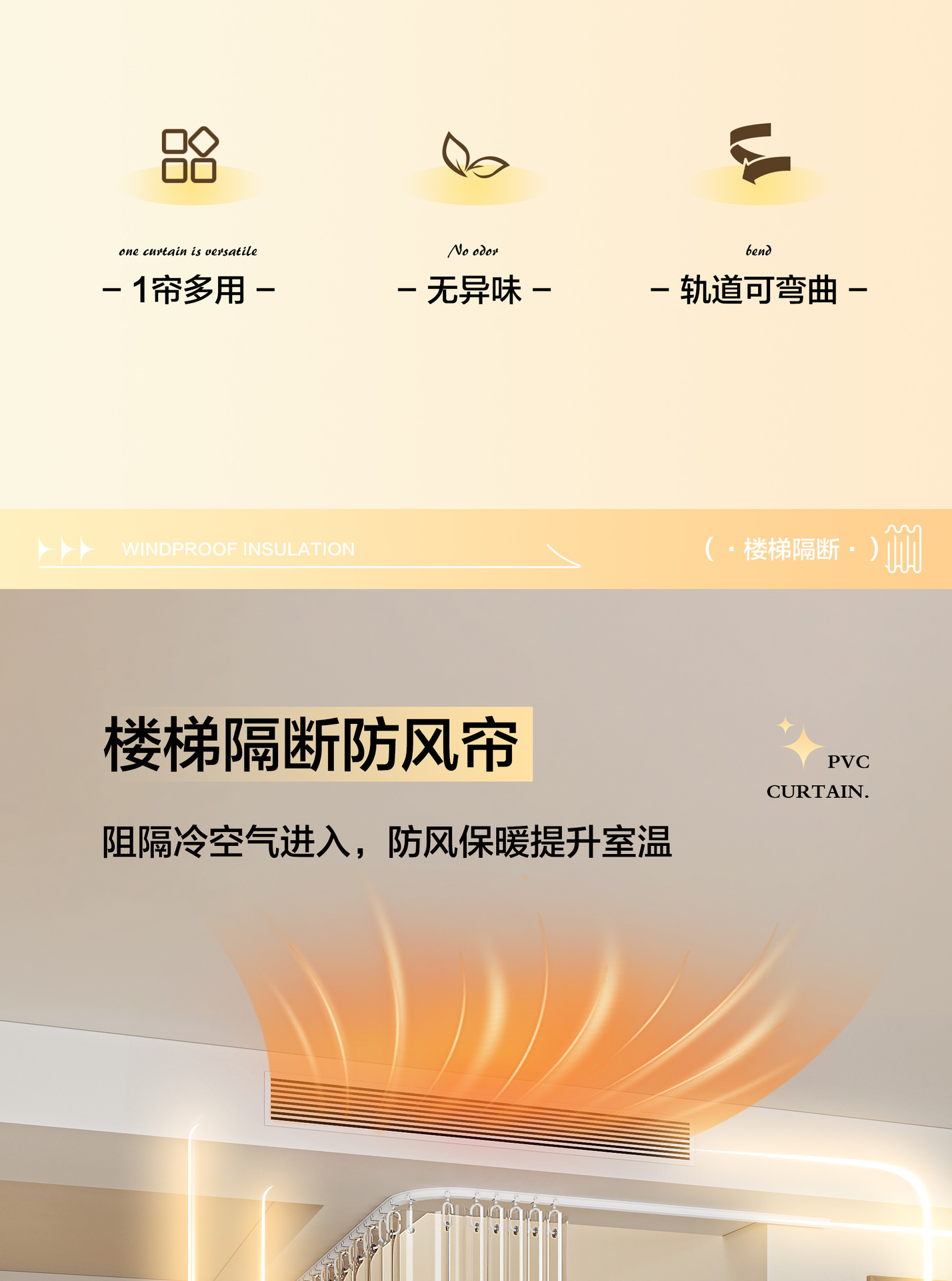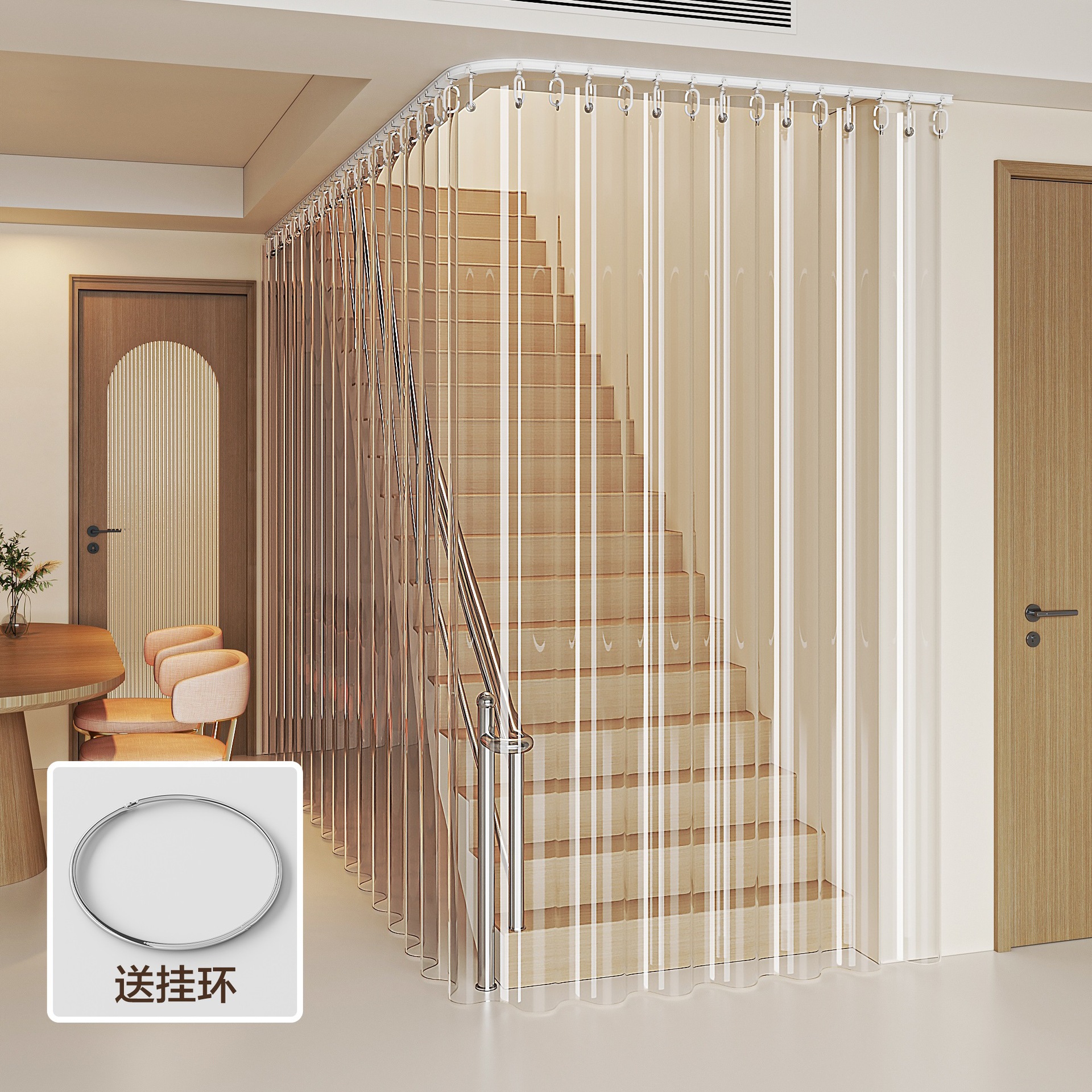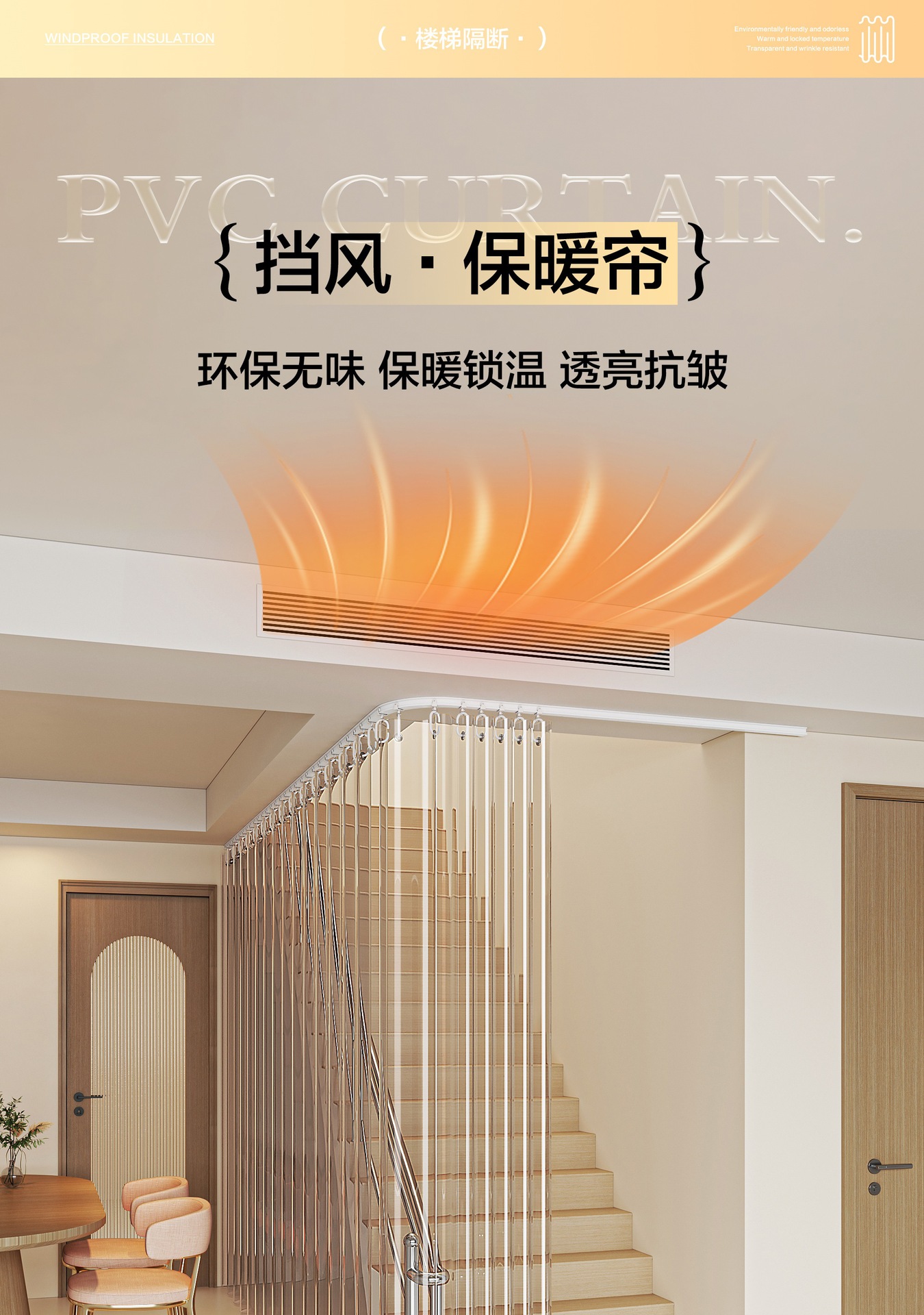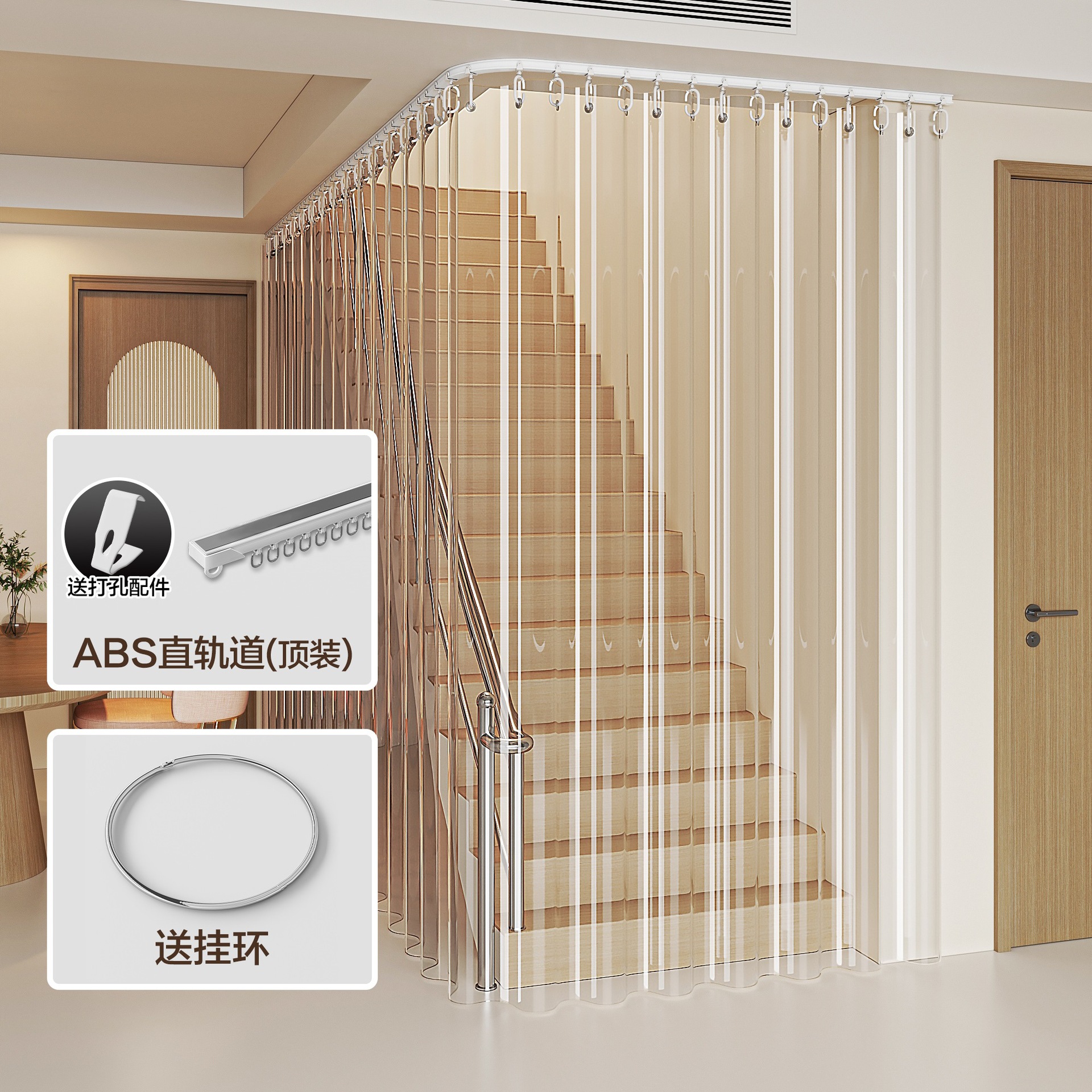 계단 커튼, 거실 발코니 투명 도어 커튼, 방풍 에어컨 칸막이 커튼 트랙, 겨울 따뜻함스토어 가기