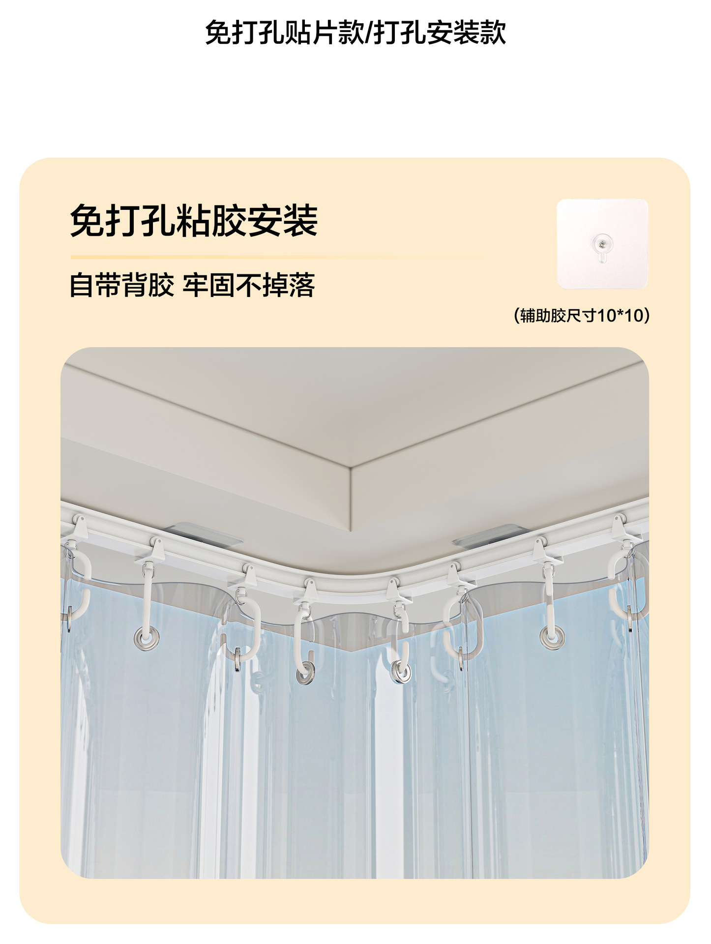 • [커튼 + 트랙] 두꺼워진 완전 투명 + 금속 링 + 측면 장착형 구부릴 수 있는 트랙(원하는 대로 모양 조정 가능)(펀칭 겸용/펀칭 없음)