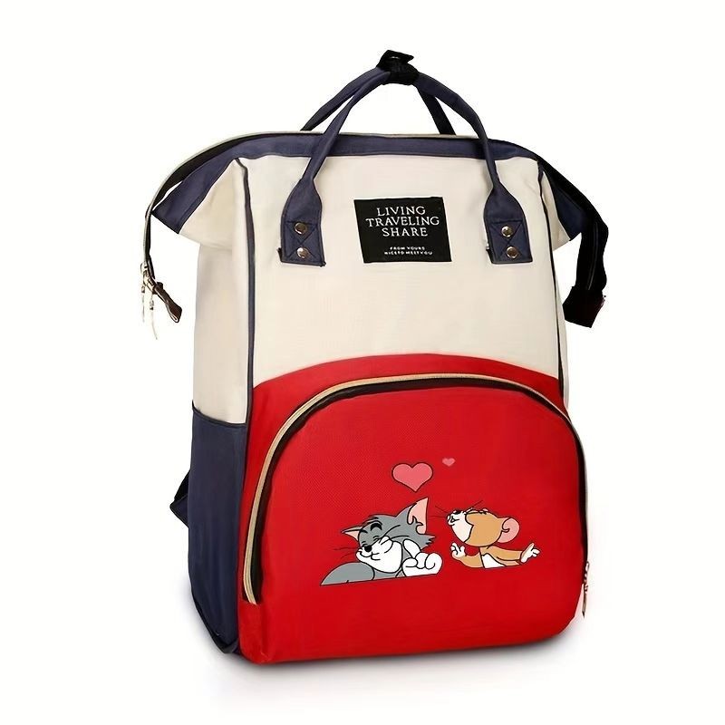새로운 곰 만화 인쇄 엄마 가방 새로운 패션 우유 저장 휴대용 캔버스 배낭 대용량