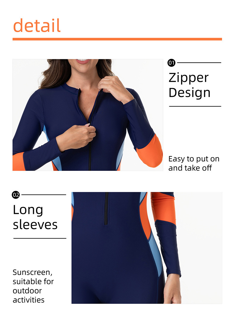 2026 유럽 및 미국 신상 수영복 긴팔 지퍼 서핑복 다이빙복 여성 수영복 비키니