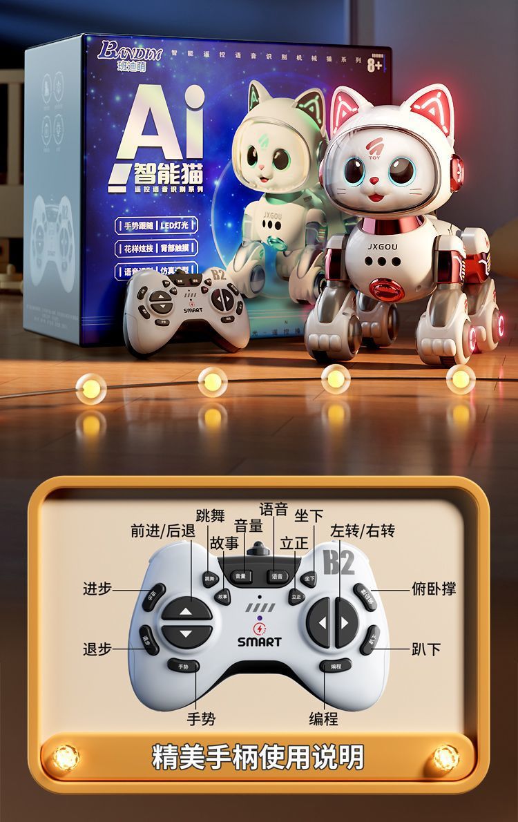 • 핑크 [업그레이드된 제스처 장애물 회피 버전] 우주 스마트 로봇 고양이