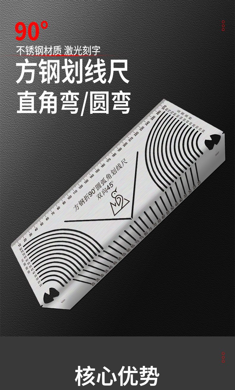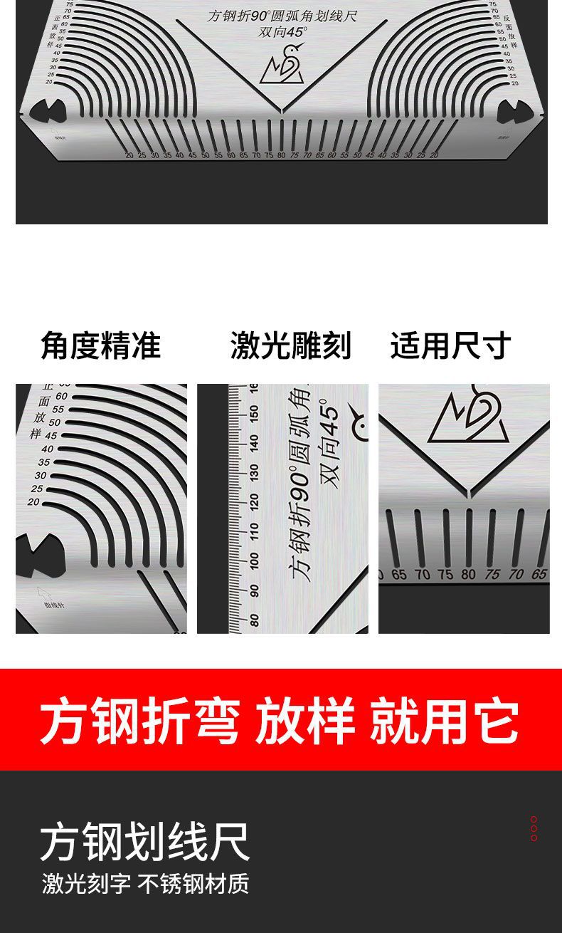 아크 각도 그리기 눈금자, 사각형 강철 접이식 90도 아크 각도 그리기 눈금자, 아크 모양의 반원형 양방향 45도 그리기 눈금자스토어 가기