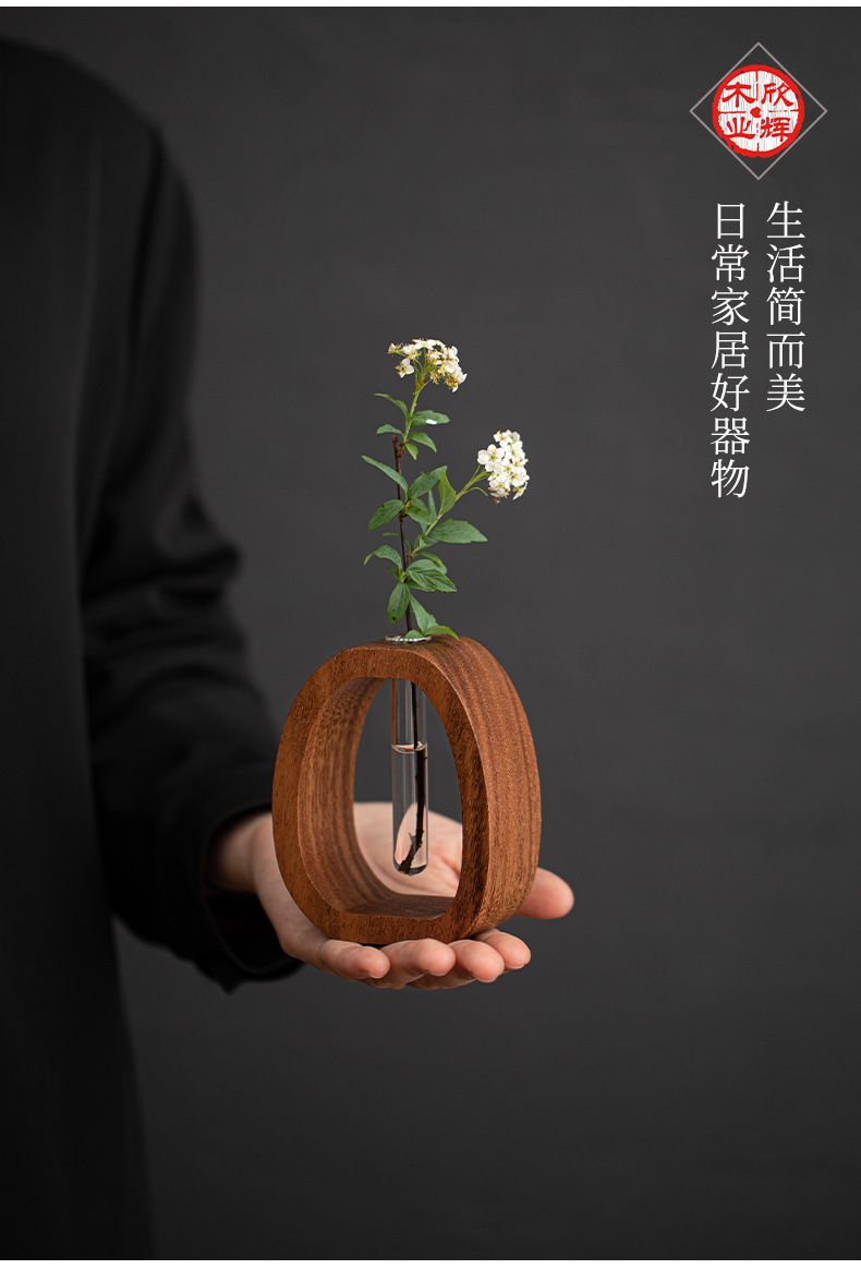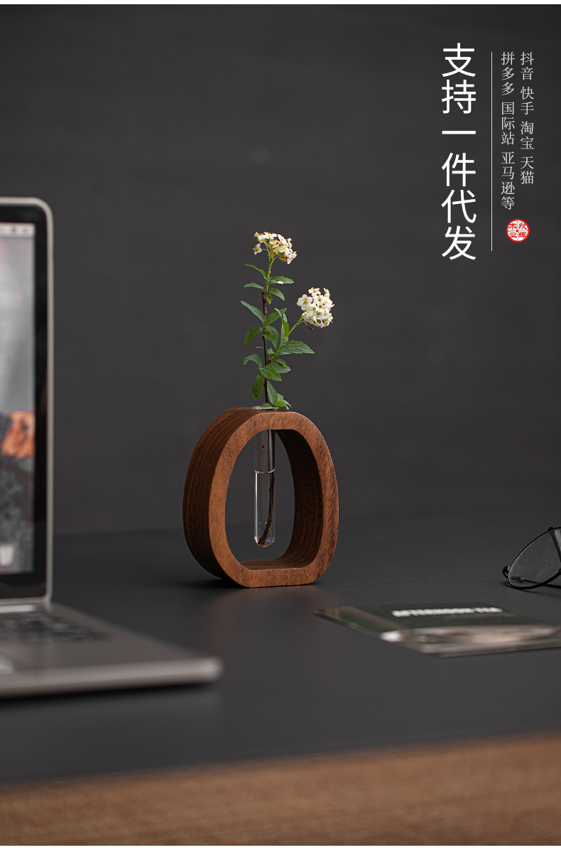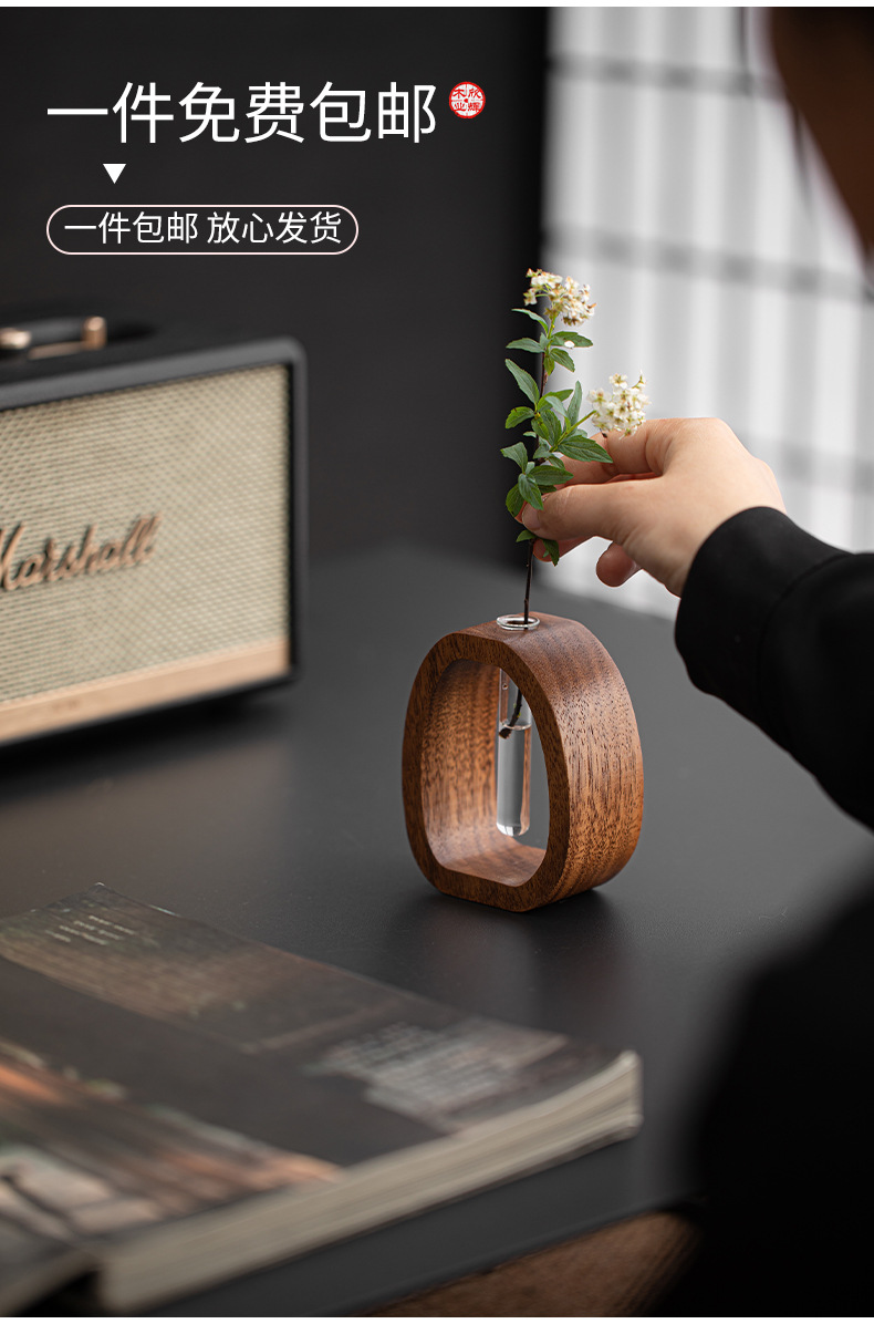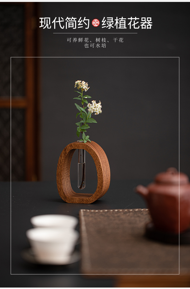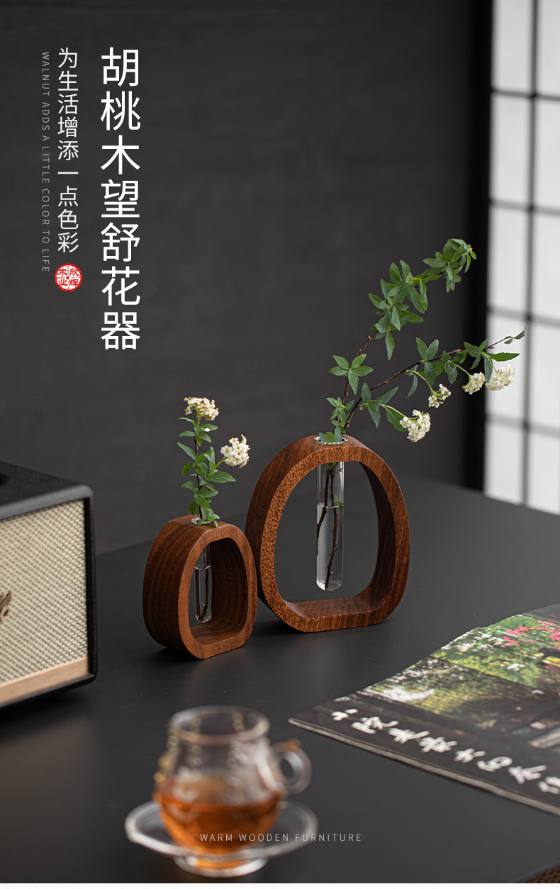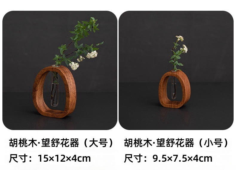 Wangshu 호두 꽃 용기, 고급 복고풍 소형 장식 꽃병, 수경 중국 꽃꽂이, 데스크탑 녹색 식물 장식품