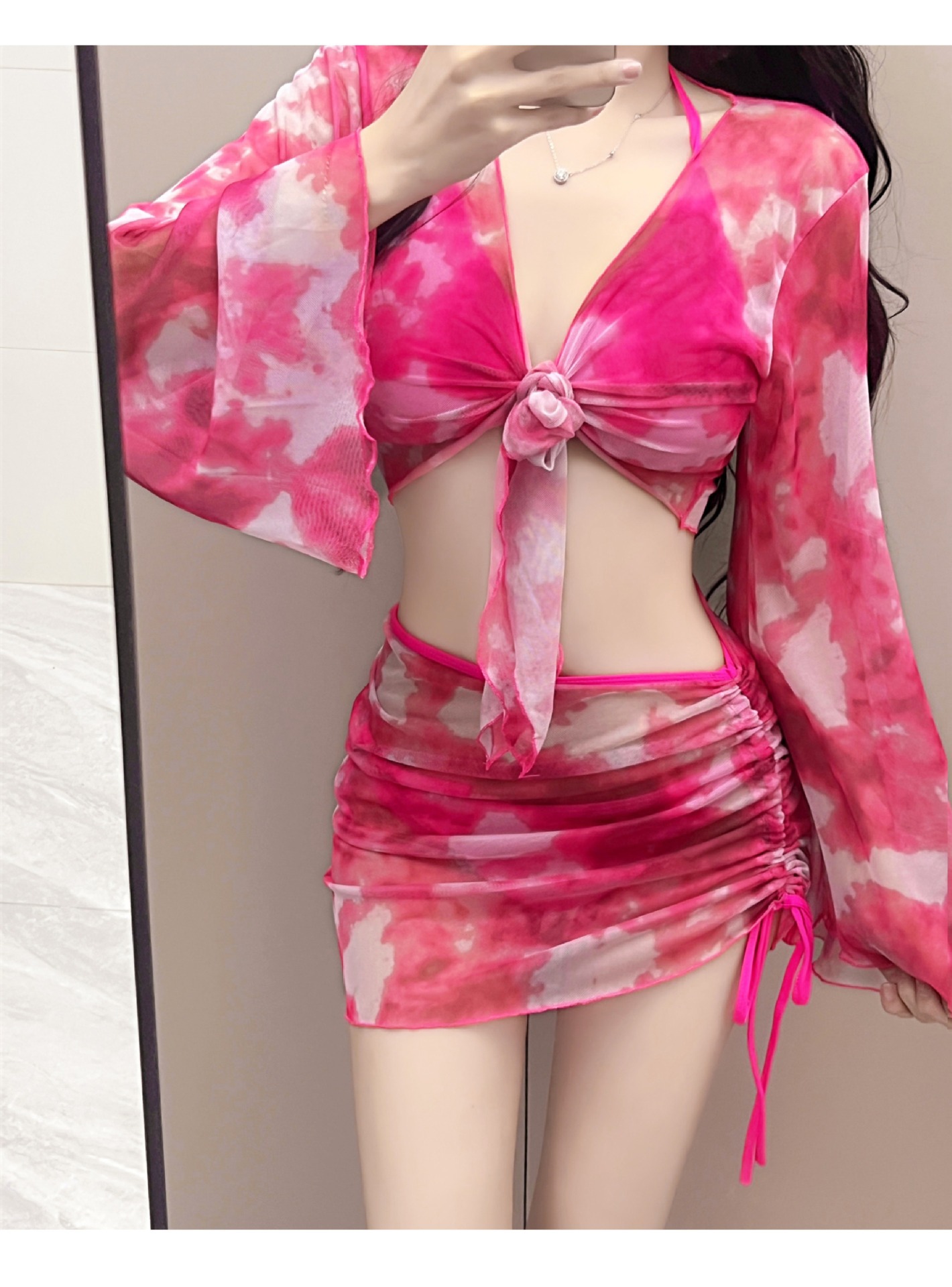 비키니 4피스 비키니 수영복 여성 스플릿 신상 긴팔 살 커버 슬리밍 수영복 여성 Bolisi 7080스토어 가기