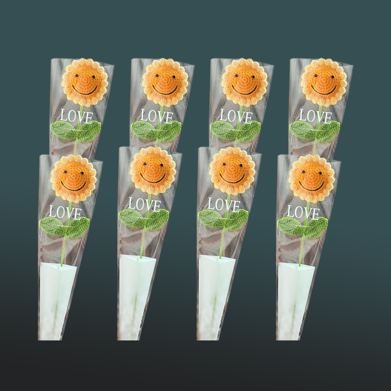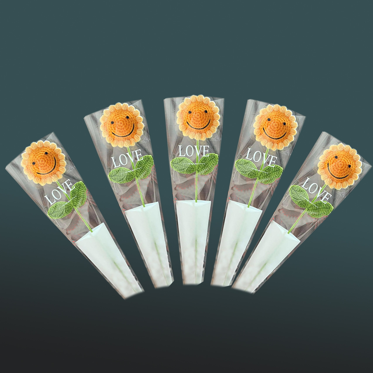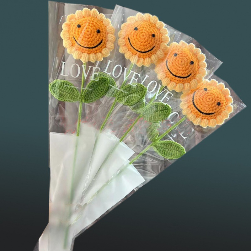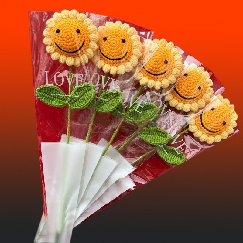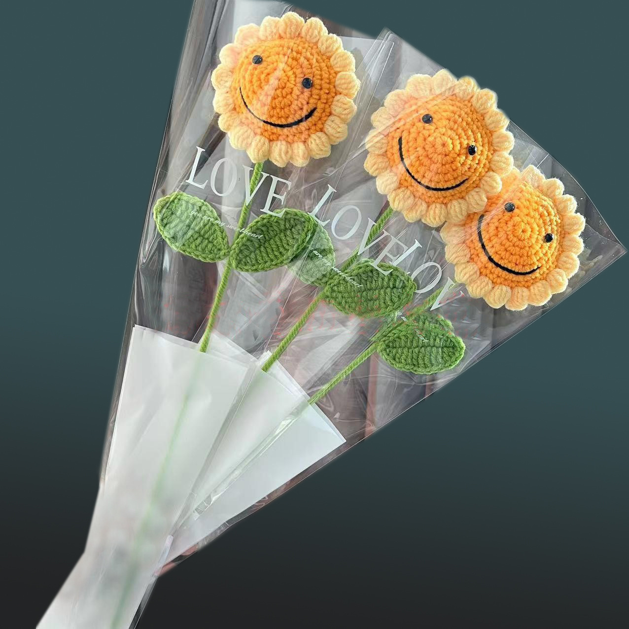 스승의 날을 위한 핸드메이드 니트 웃는 해바라기 장미 울 부케 인공 꽃 완제품