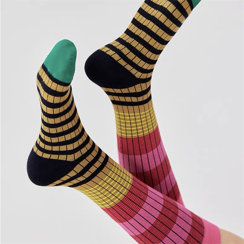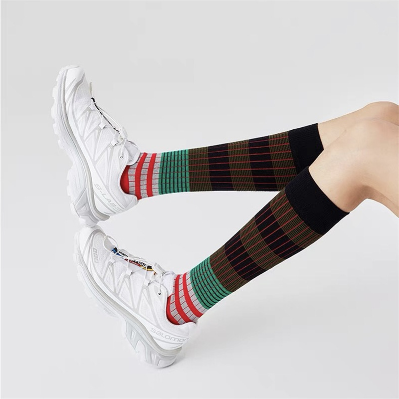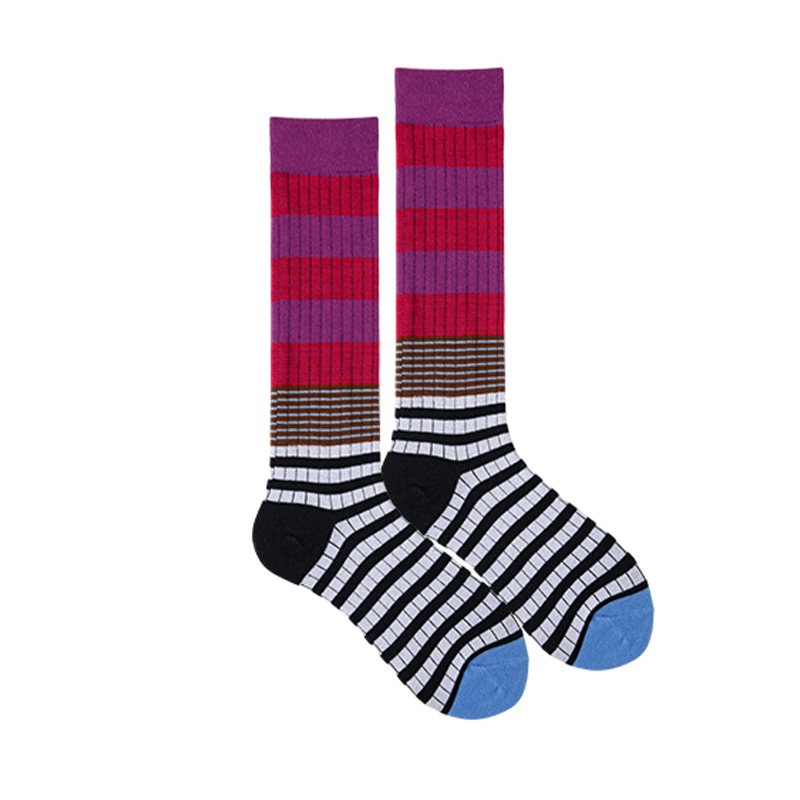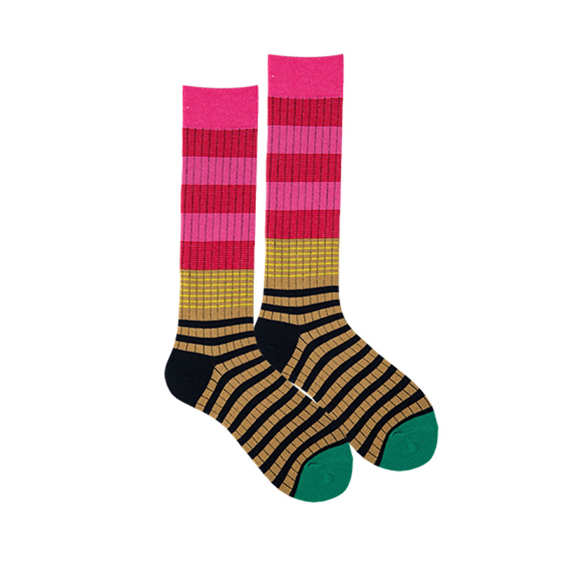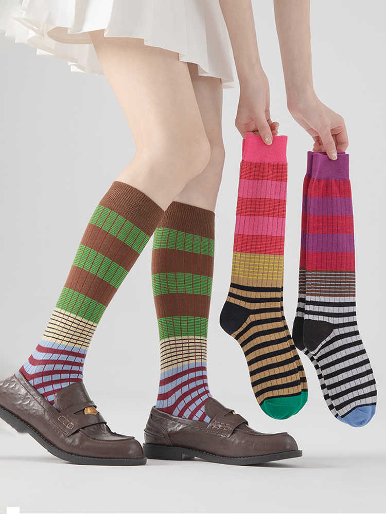 그라디언트 색상 대비 색상 복고풍 줄무늬 종아리 양말 ins 트렌디 인터넷 연예인 동적 색상 야외 양말 여성