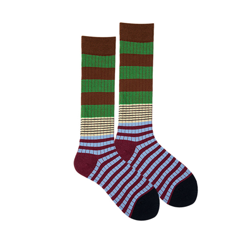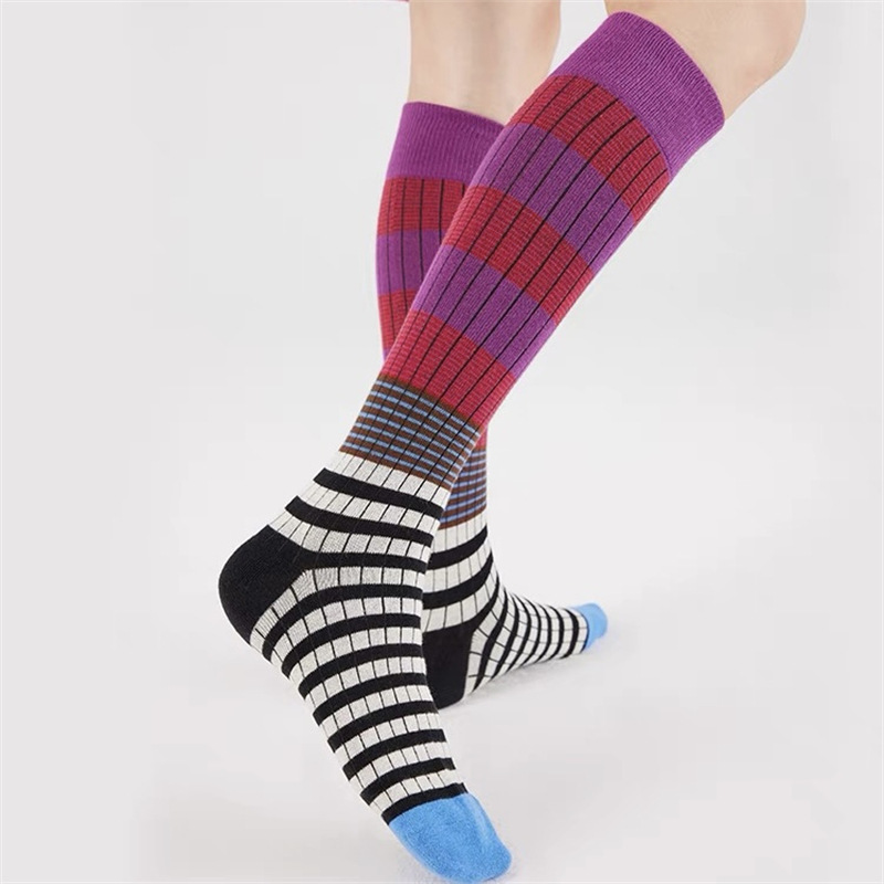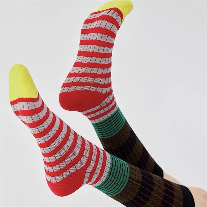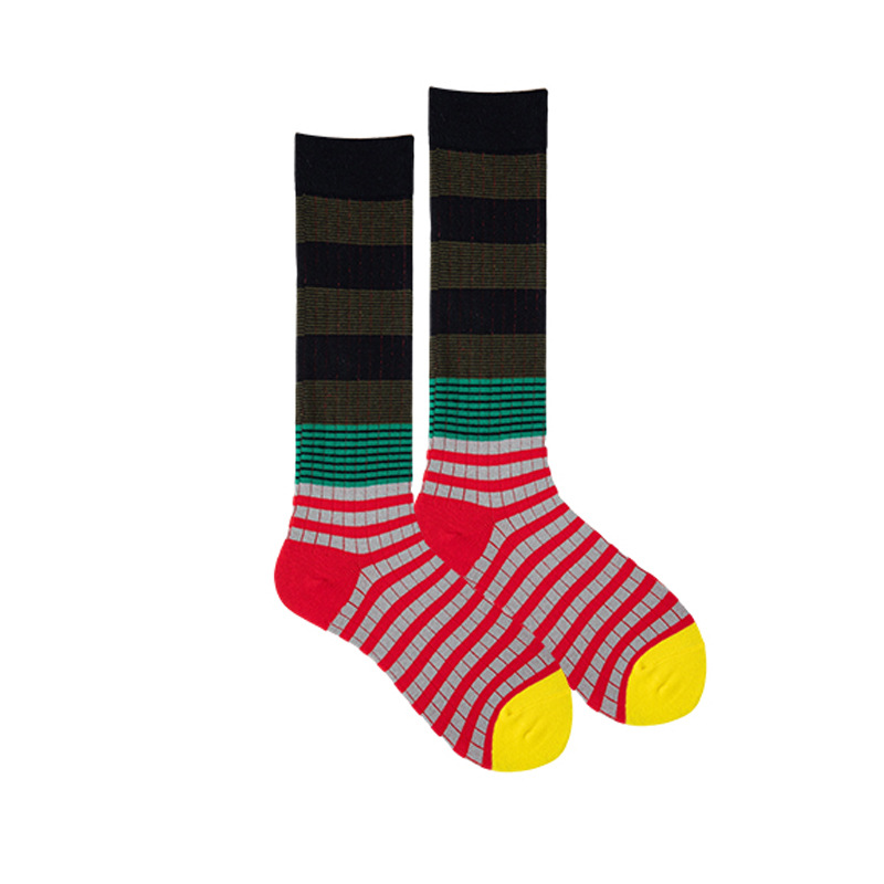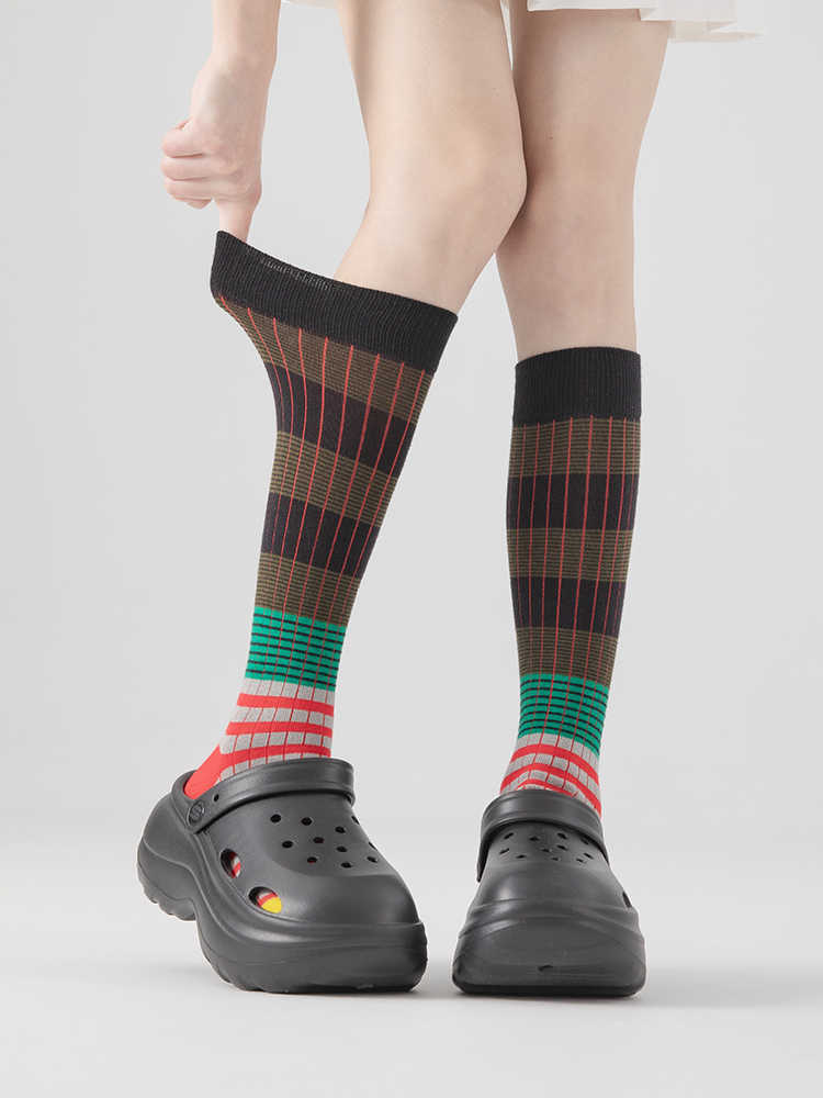 그라디언트 색상 대비 색상 복고풍 줄무늬 종아리 양말 ins 트렌디 인터넷 연예인 동적 색상 야외 양말 여성