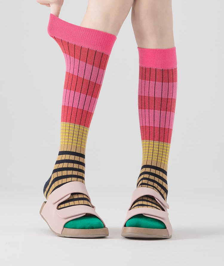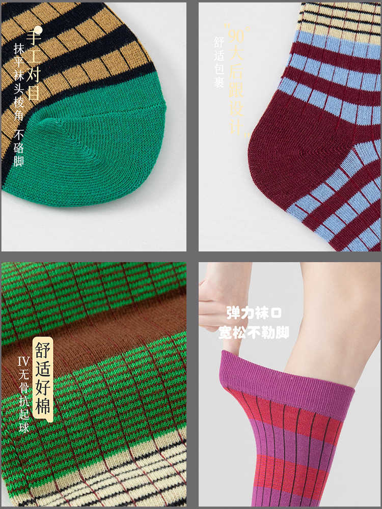 그라디언트 색상 대비 색상 복고풍 줄무늬 종아리 양말 ins 트렌디 인터넷 연예인 동적 색상 야외 양말 여성스토어 가기