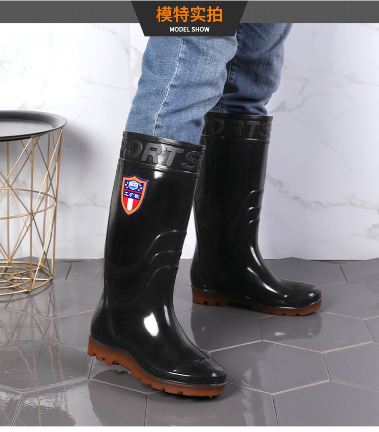 봄과 가을 남성용 대형 장화, 힘줄 밑창 하이탑 장화, 주방 산 및 알칼리 방지 고무 신발, 방수, 미끄럼 방지 및 내마모성 워터 슈즈스토어 가기