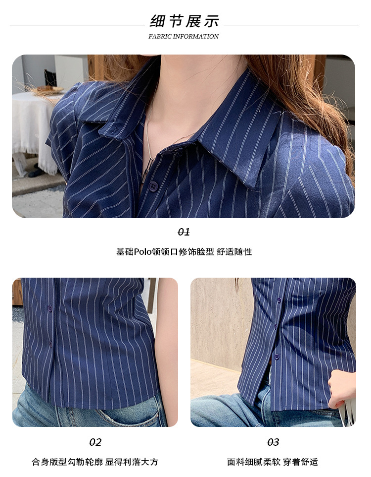 실제 사진 # 여성용 스트라이프 오른쪽 어깨 반팔 셔츠 2025 여름 디자인 주름 허리 슬리밍