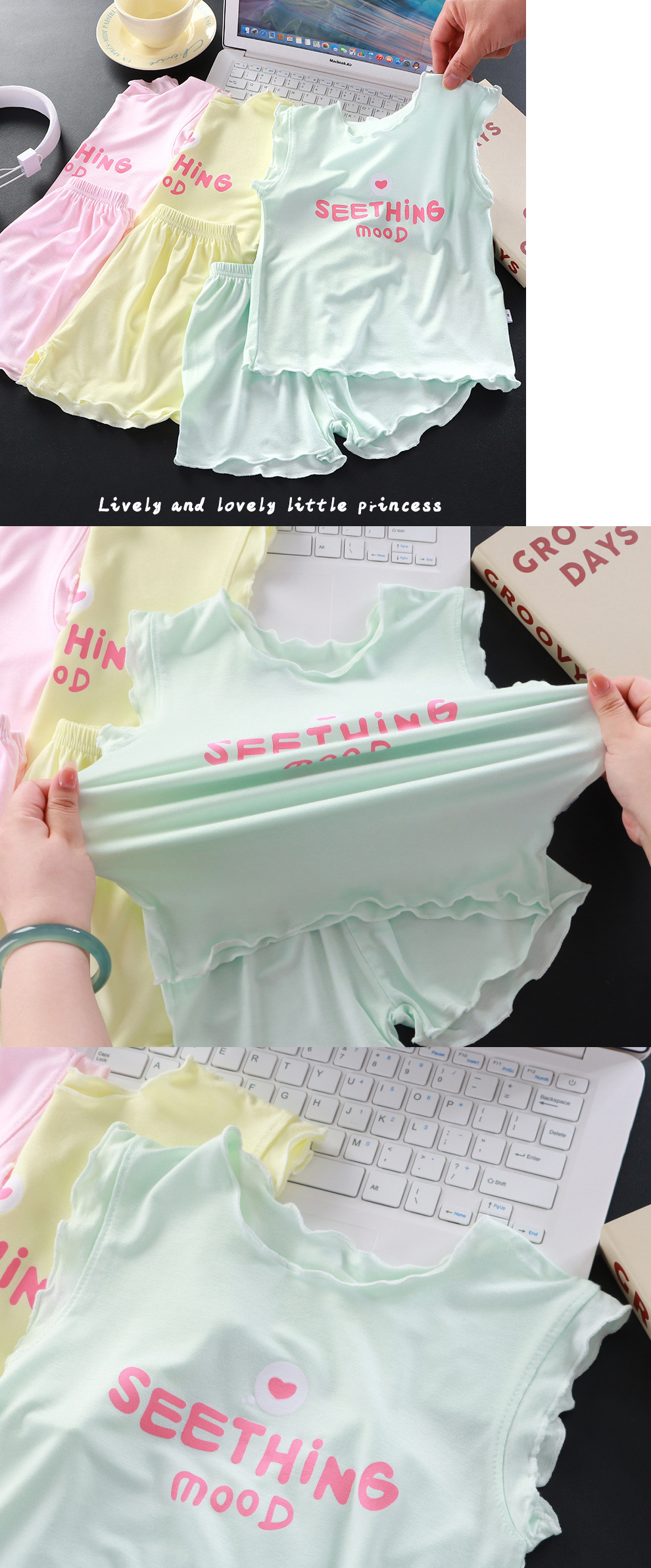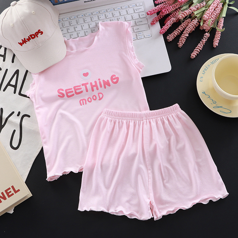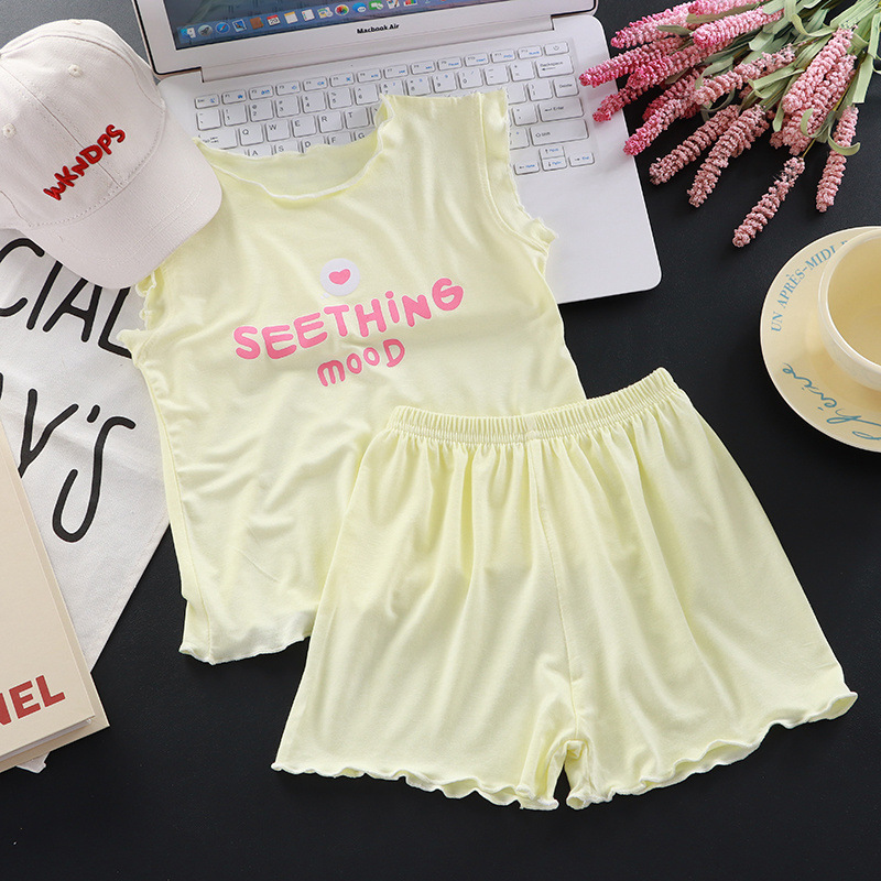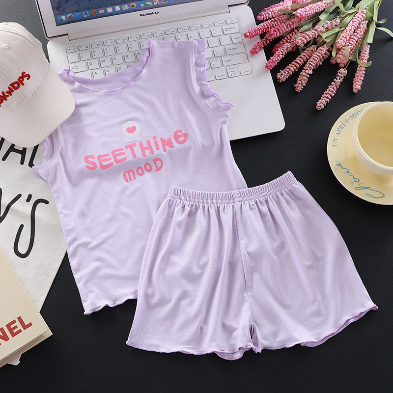 새로운 모달 여아 정장, 아동 잠옷, 가정복, 유아 여름 얇은 에어컨 의류, 투피스 트렌디 세트