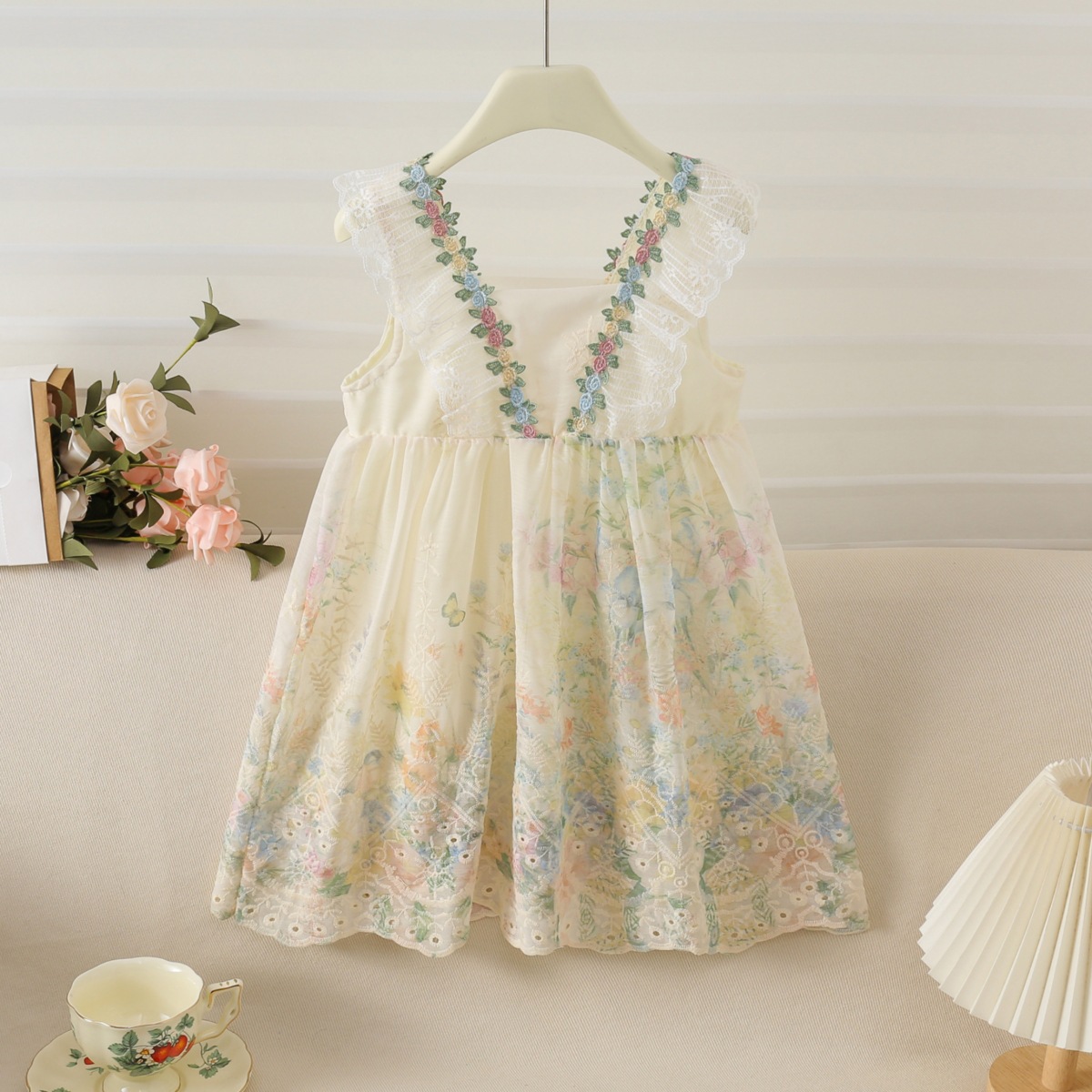 2025 새로운 여름 한국 스타일 유행 아기 소녀 꽃 스타일 스커트 어린 소녀 공주 스타일 슈퍼 요정 드레스스토어 가기