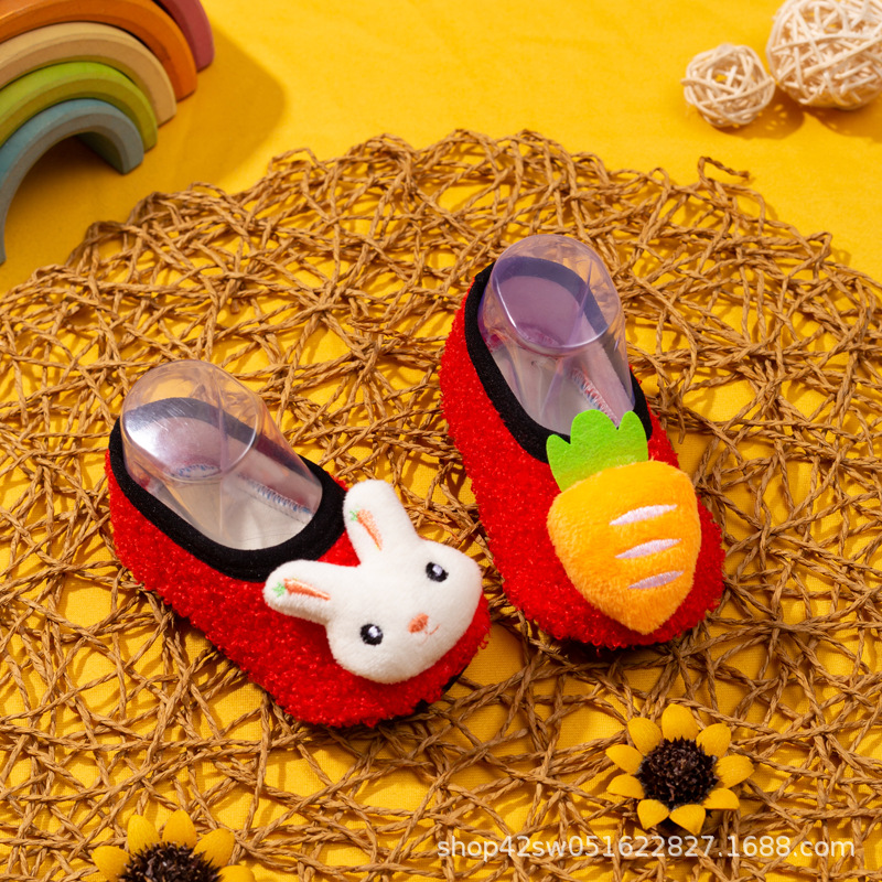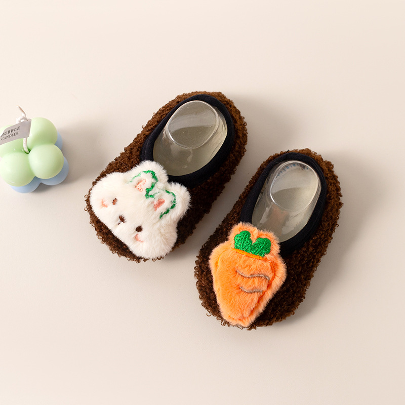 W Lebei 비즈니스 바닥 양말 어린이 가을, 겨울 두꺼운 벨벳 아기 유아 신발 및 양말 아기 미끄럼 방지 부드러운 바닥 조기 교육 신발