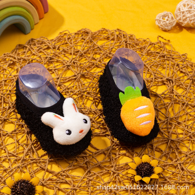 W Lebei 비즈니스 바닥 양말 어린이 가을, 겨울 두꺼운 벨벳 아기 유아 신발 및 양말 아기 미끄럼 방지 부드러운 바닥 조기 교육 신발스토어 가기