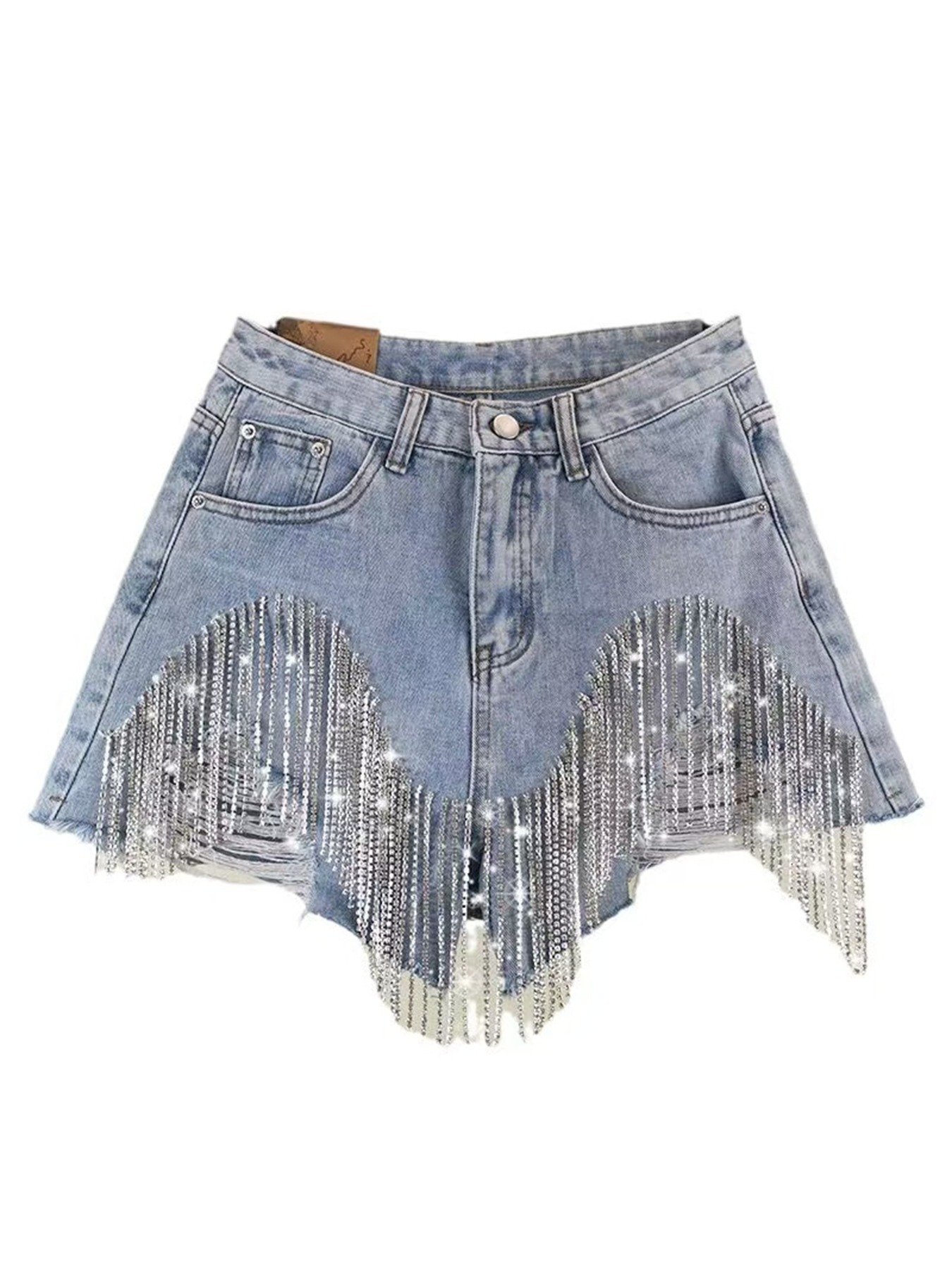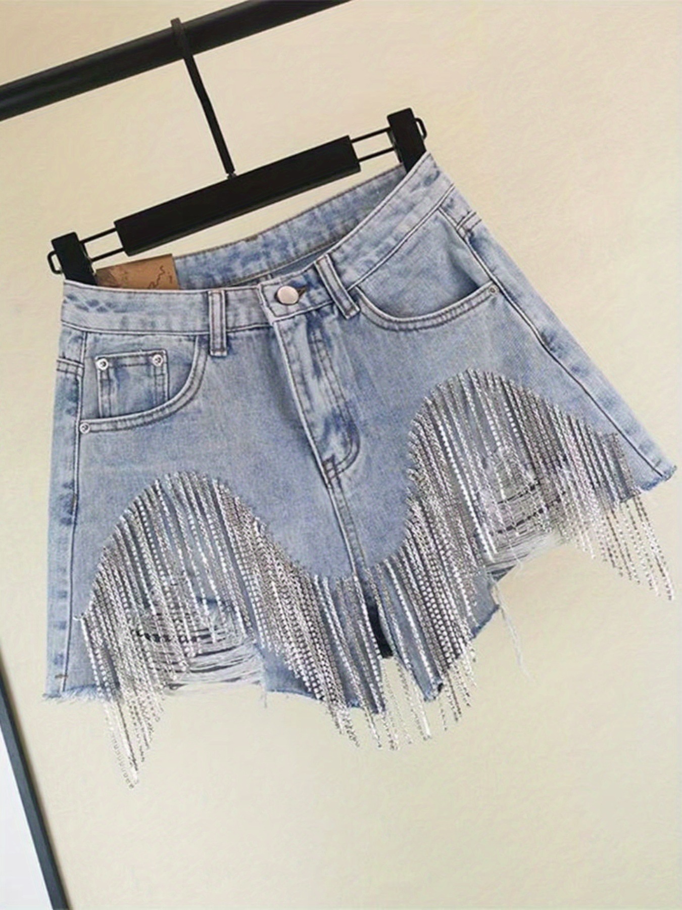 Y2K 패션 여성용 반바지, 찢어진 태슬과 체인 포함스토어 가기