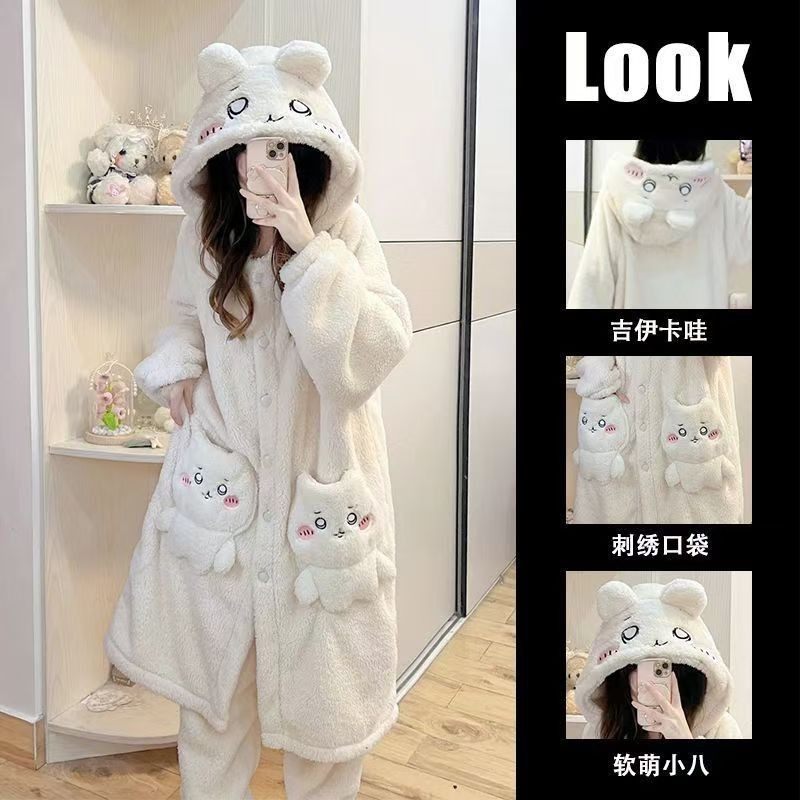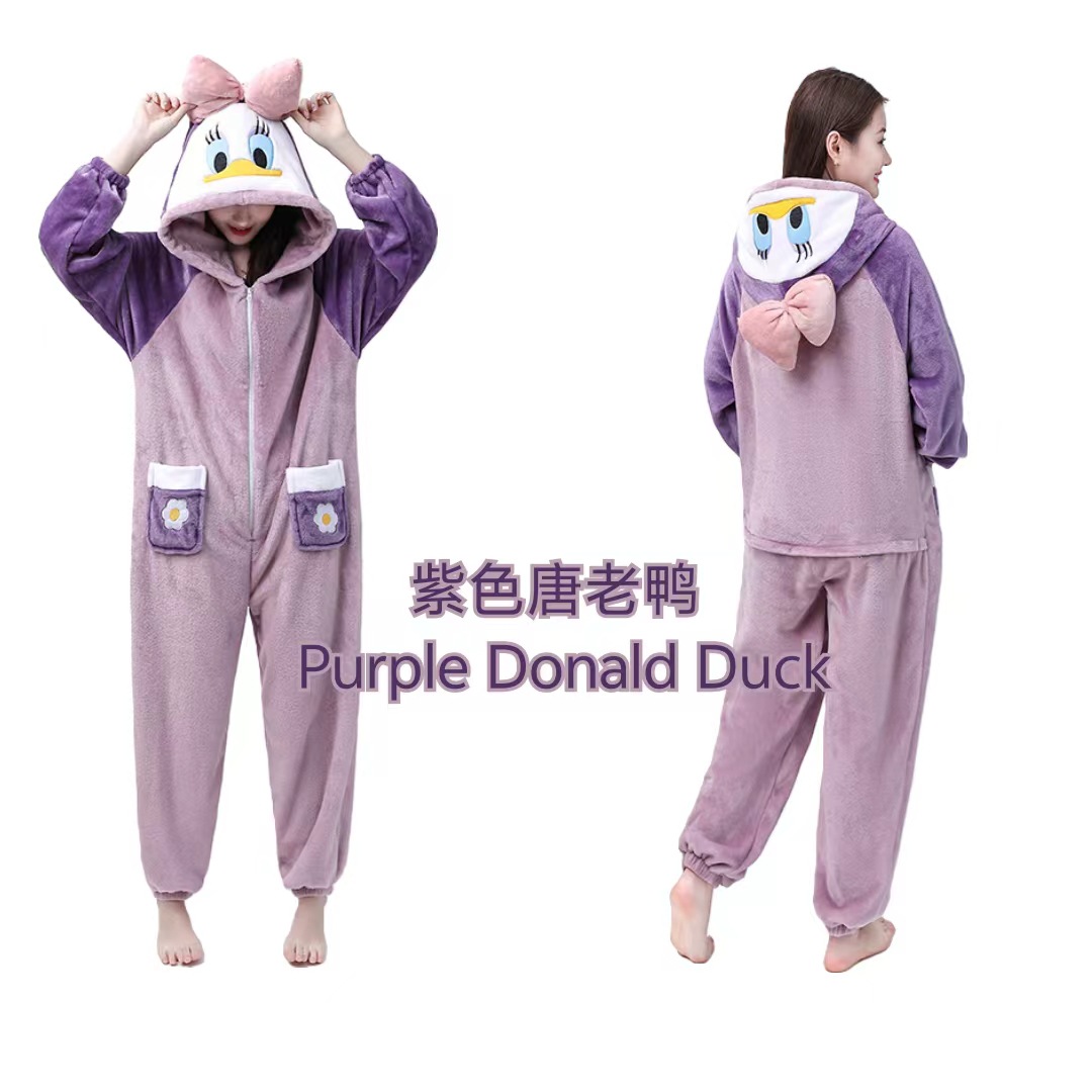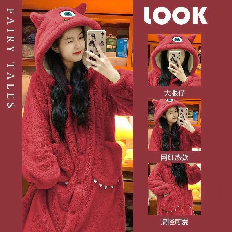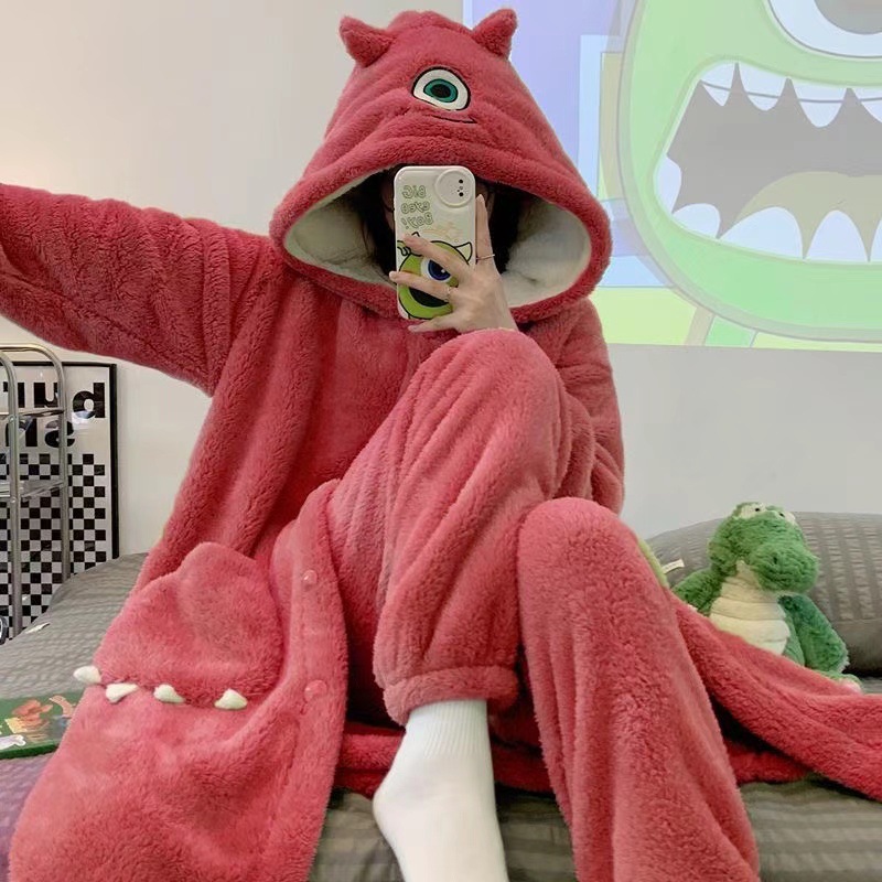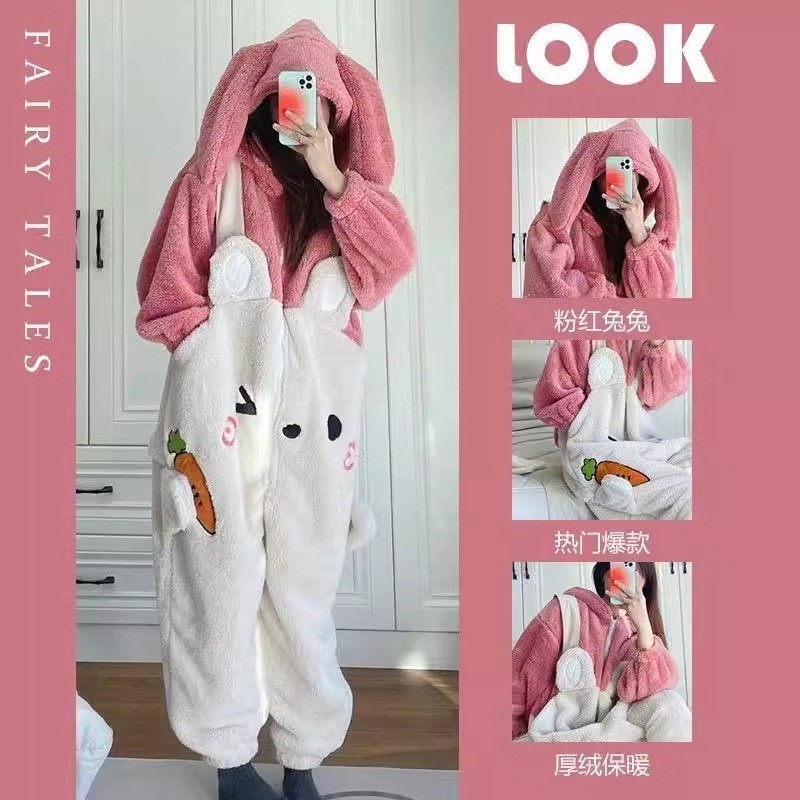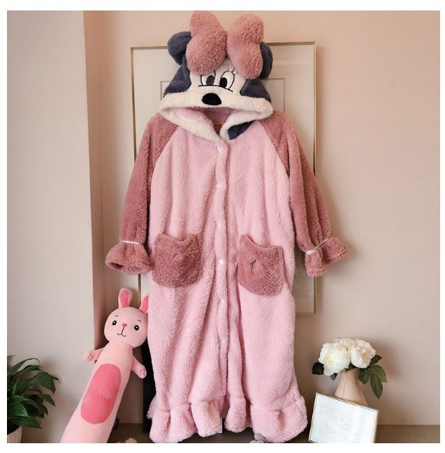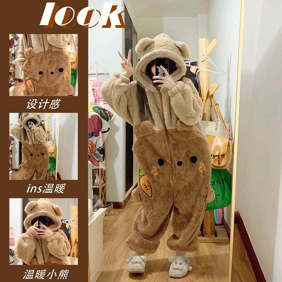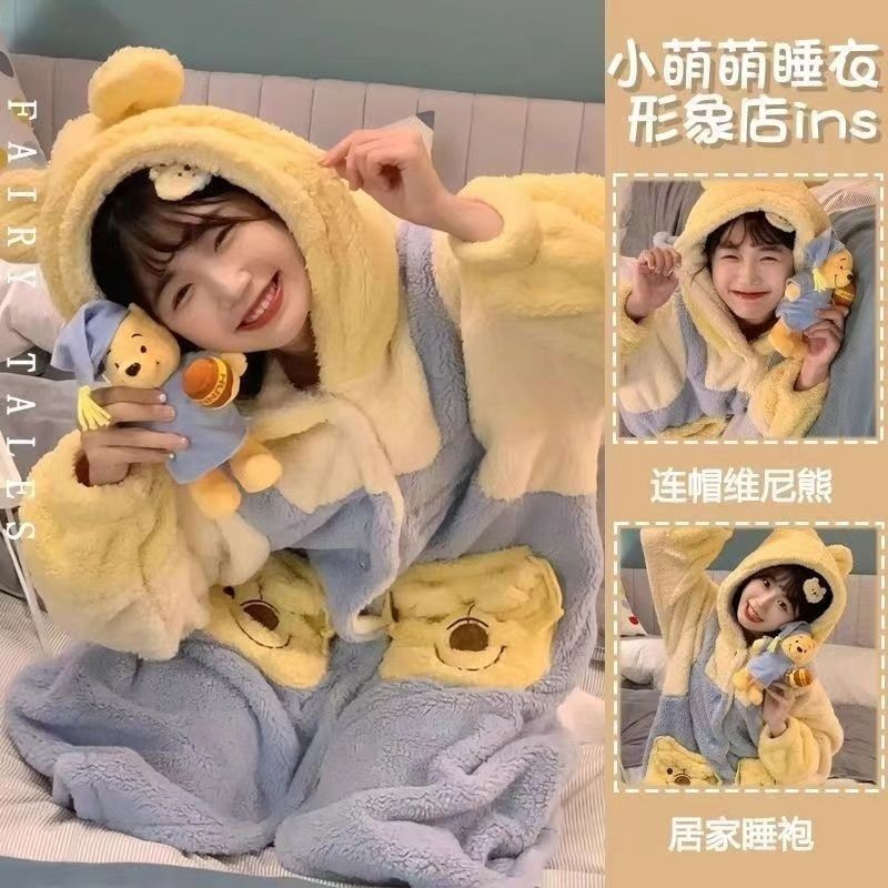 여성을위한 귀여운 딸기 곰 계피 개 잠옷 겨울 두꺼운 도널드 덕 산호 벨벳 2025 학생 잠옷 세트스토어 가기