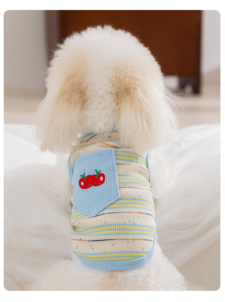 봄과 여름 개 체리 수 놓은 다채로운 도트 줄무늬 양복 얇은 통기성 중소형 개와 고양이 애완 동물 옷