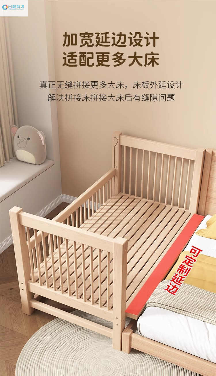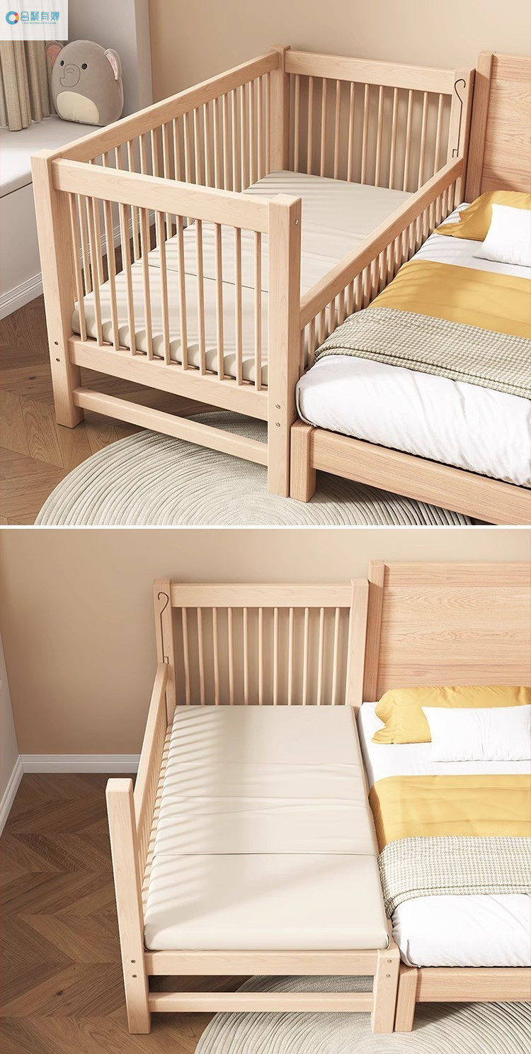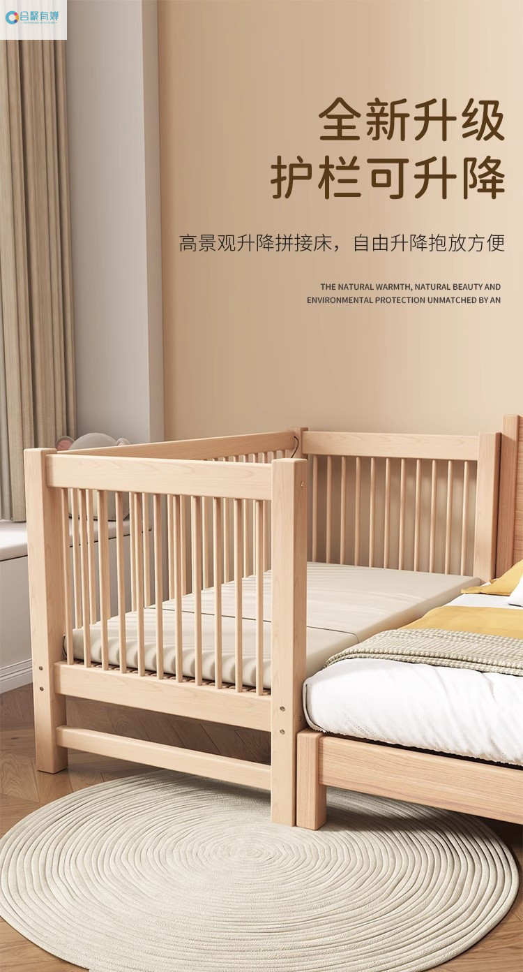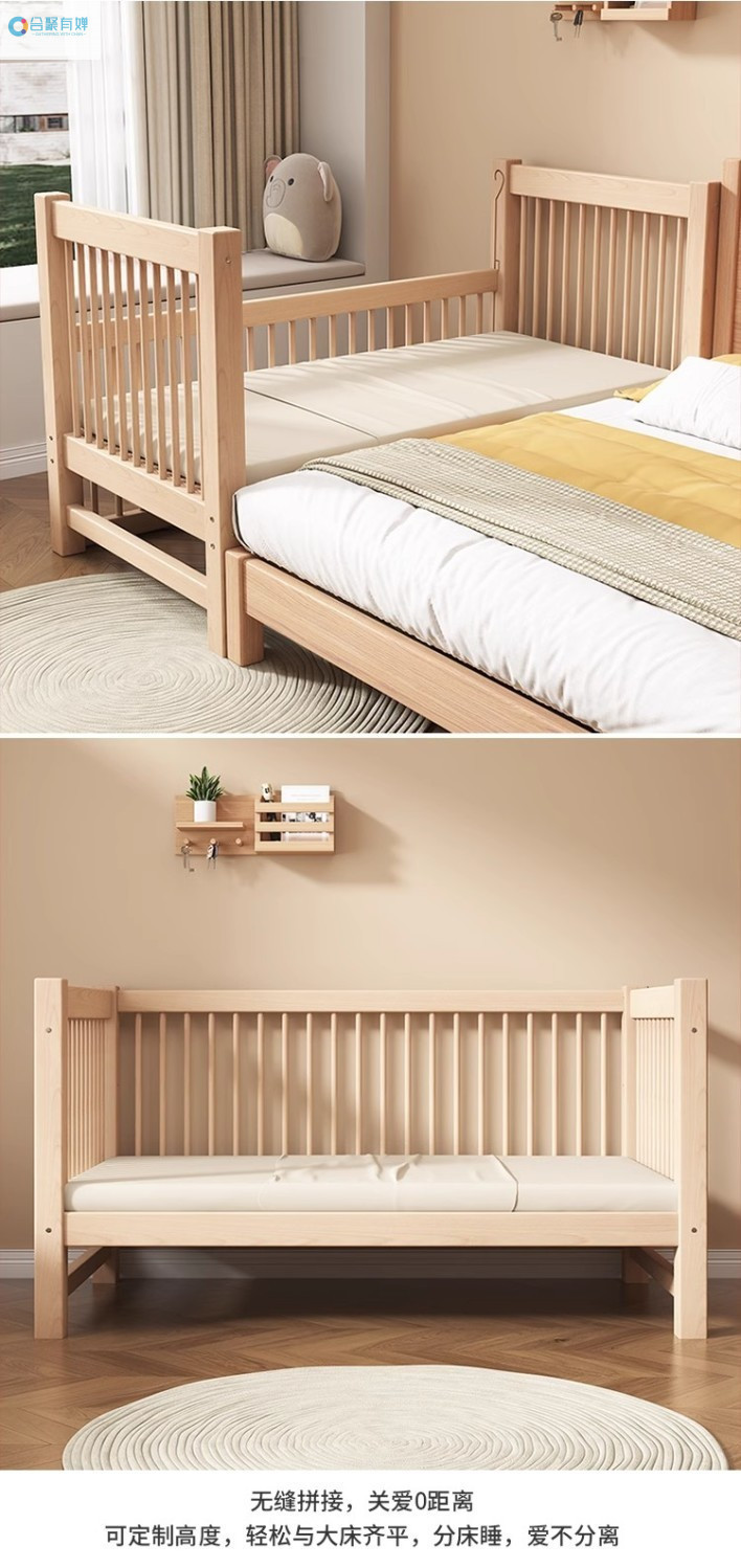 원목 베이비 접합 침대, 너도밤나무 어린이 침대, 원목 리프팅 가드레일, 높이 및 폭이 넓어진 침대 리프팅, 원활한 접합 침대