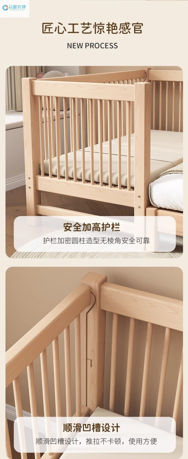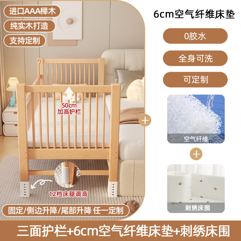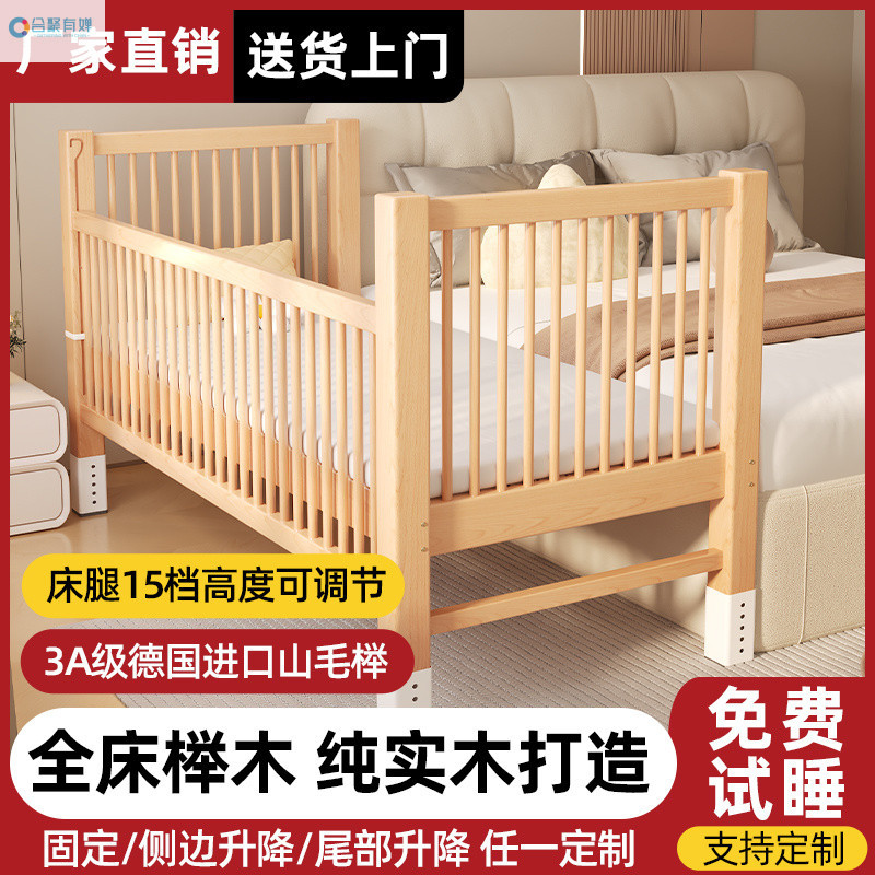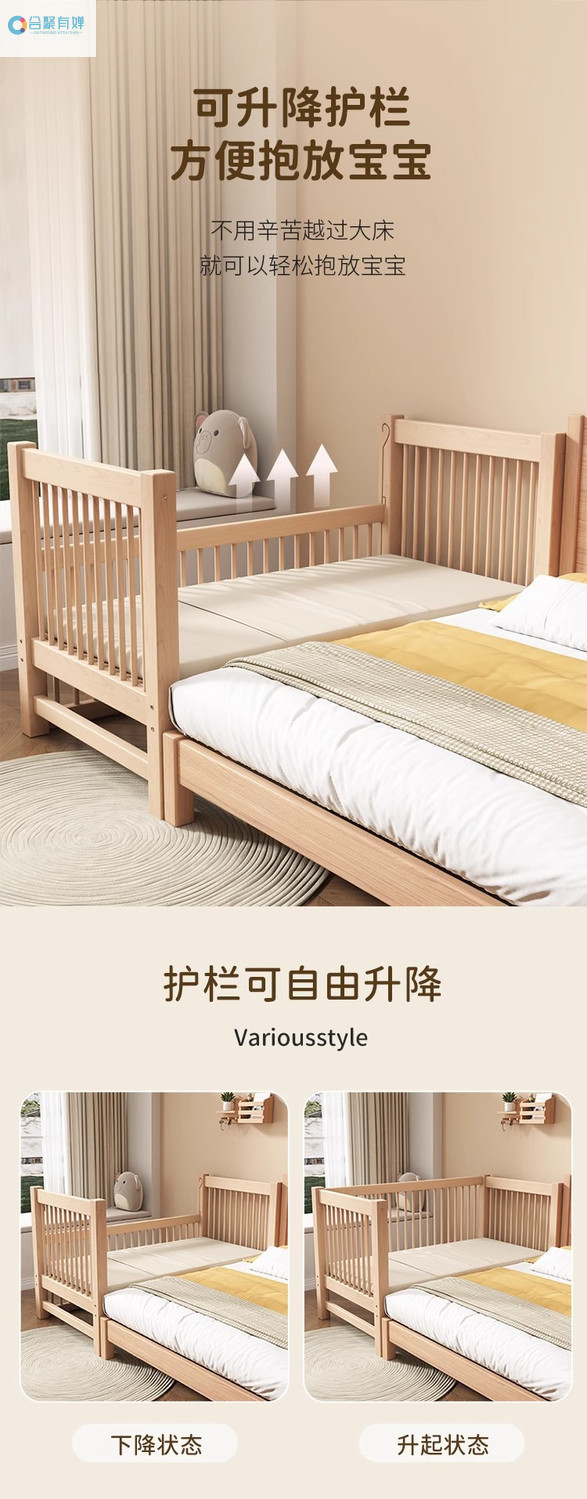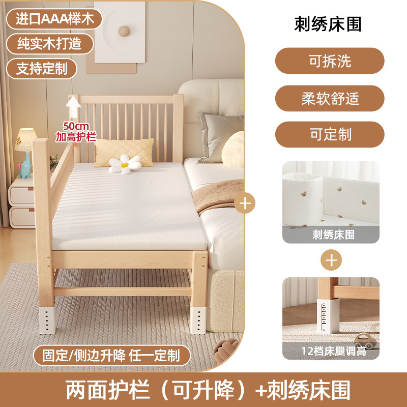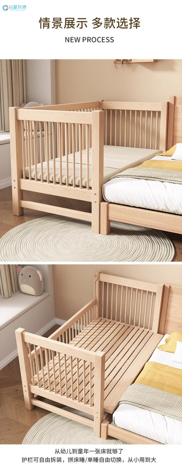 원목 베이비 접합 침대, 너도밤나무 어린이 침대, 원목 리프팅 가드레일, 높이 및 폭이 넓어진 침대 리프팅, 원활한 접합 침대