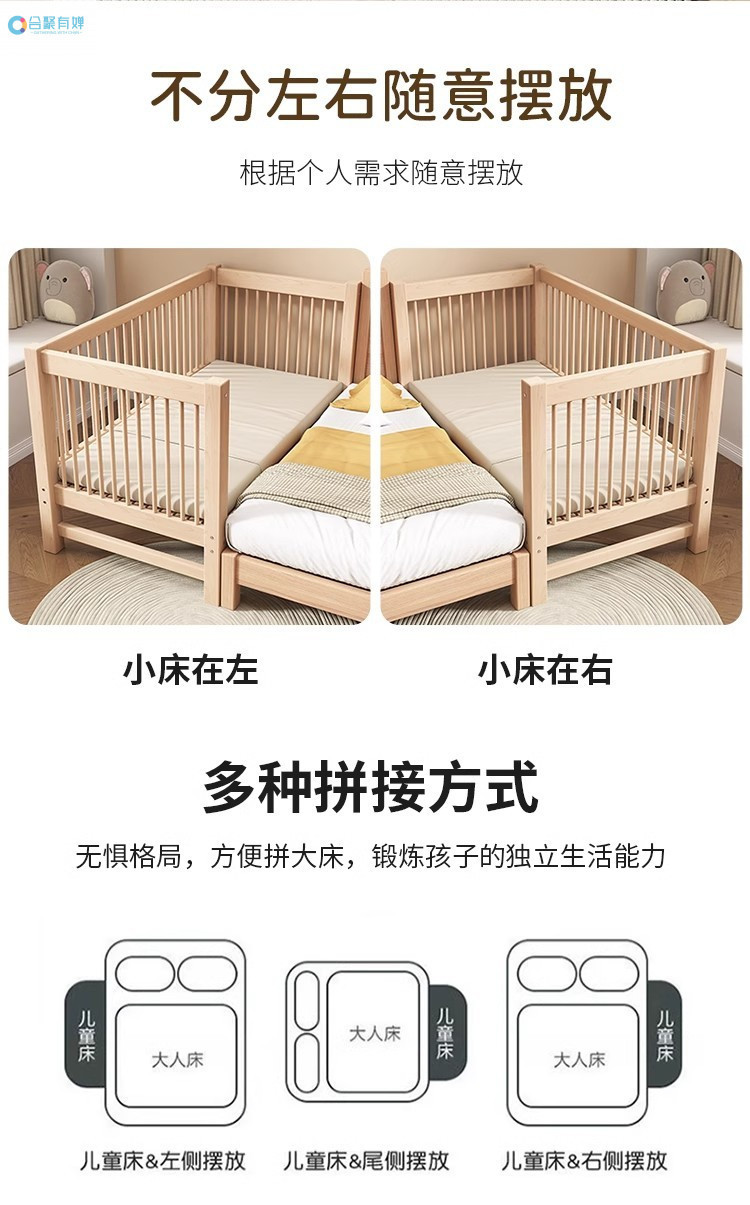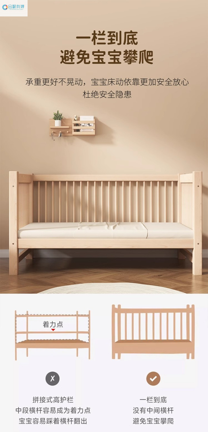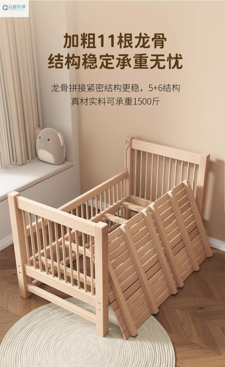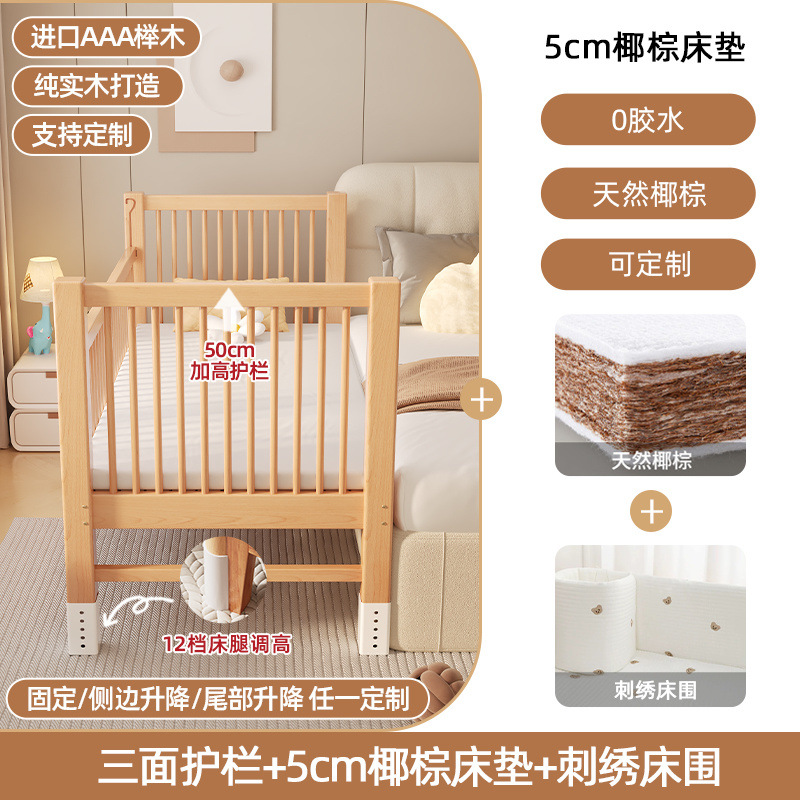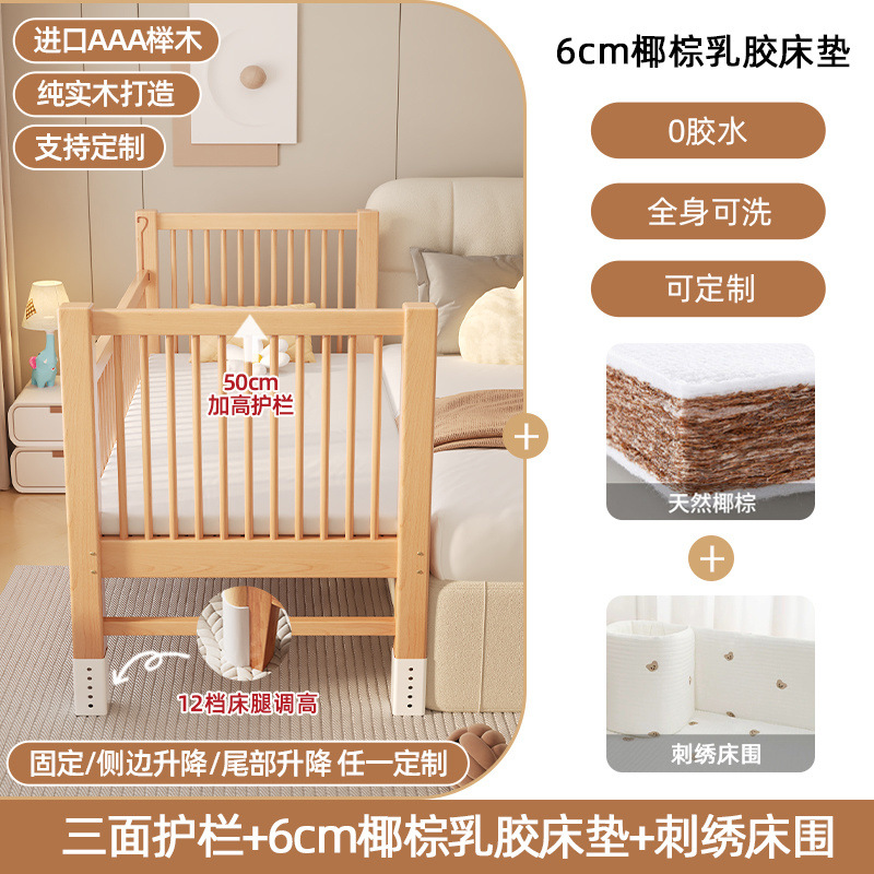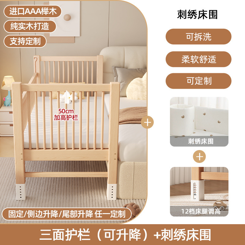원목 베이비 접합 침대, 너도밤나무 어린이 침대, 원목 리프팅 가드레일, 높이 및 폭이 넓어진 침대 리프팅, 원활한 접합 침대