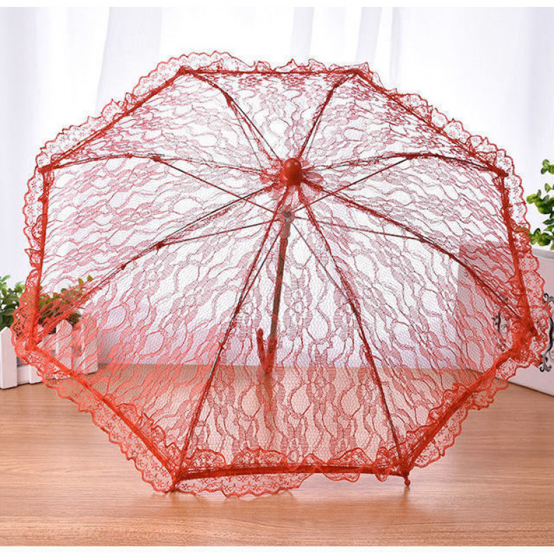 • 빨간 레이스 우산, 아주 작은 길이 20cm, 우산 표면 27cm