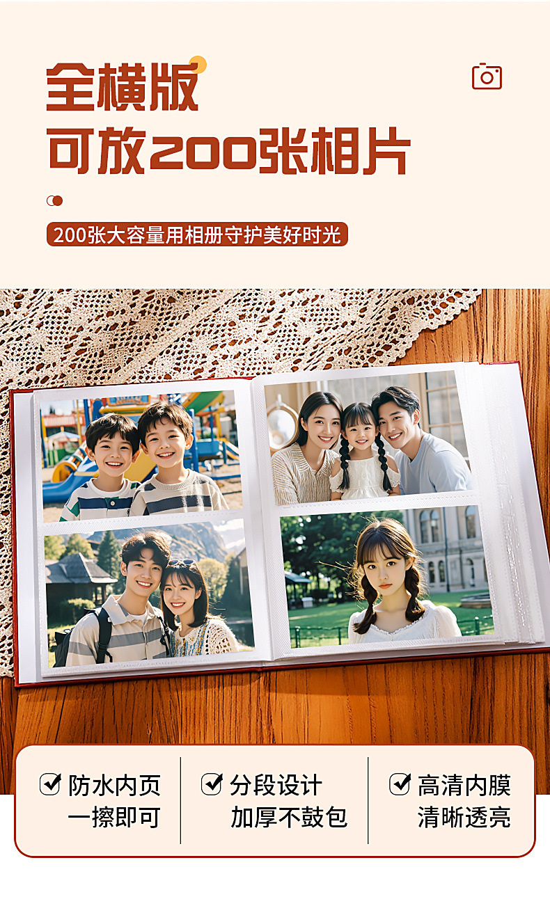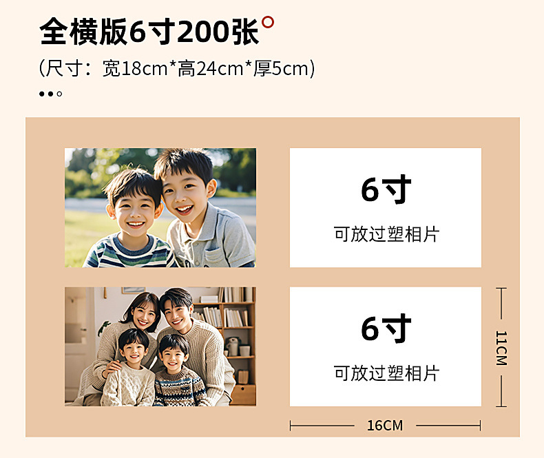 • 전폭 버전, 6인치, 200장 [표준 플라스틱 사진을 넣을 수 있음]