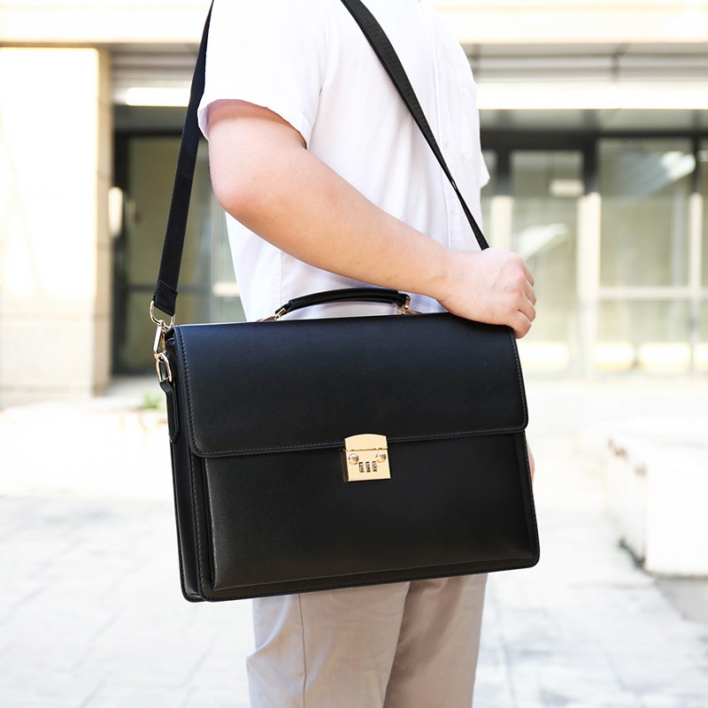 새로운 남성용 심플한 업무용 비즈니스 통근용 대용량 핸드백 서류가방 가죽 다용도 컴퓨터 가방스토어 가기