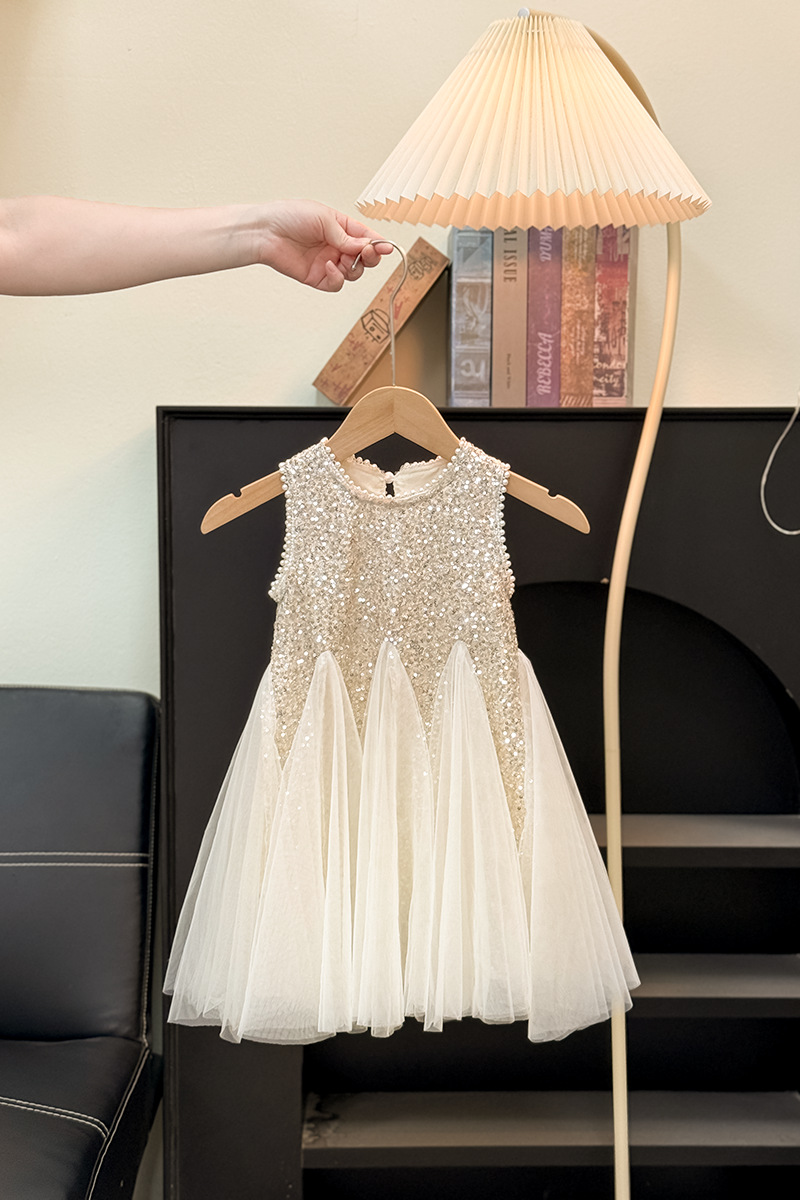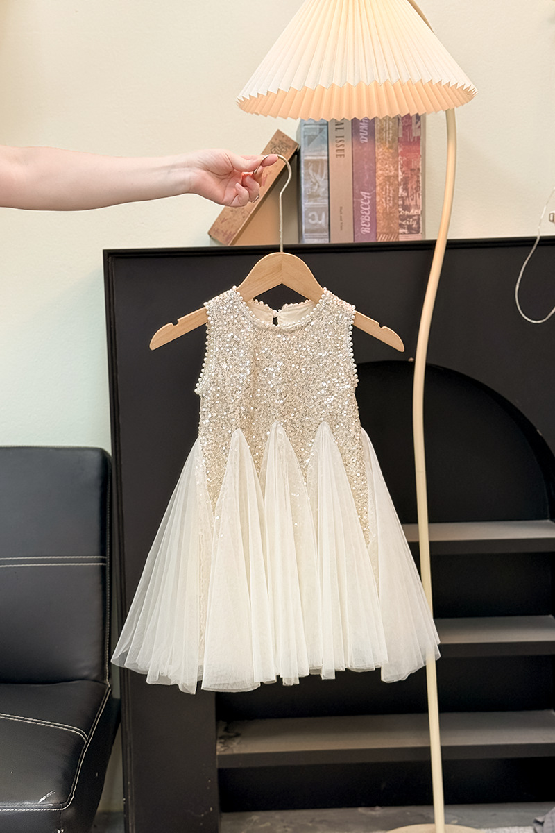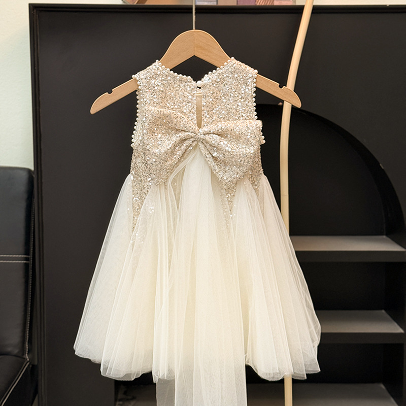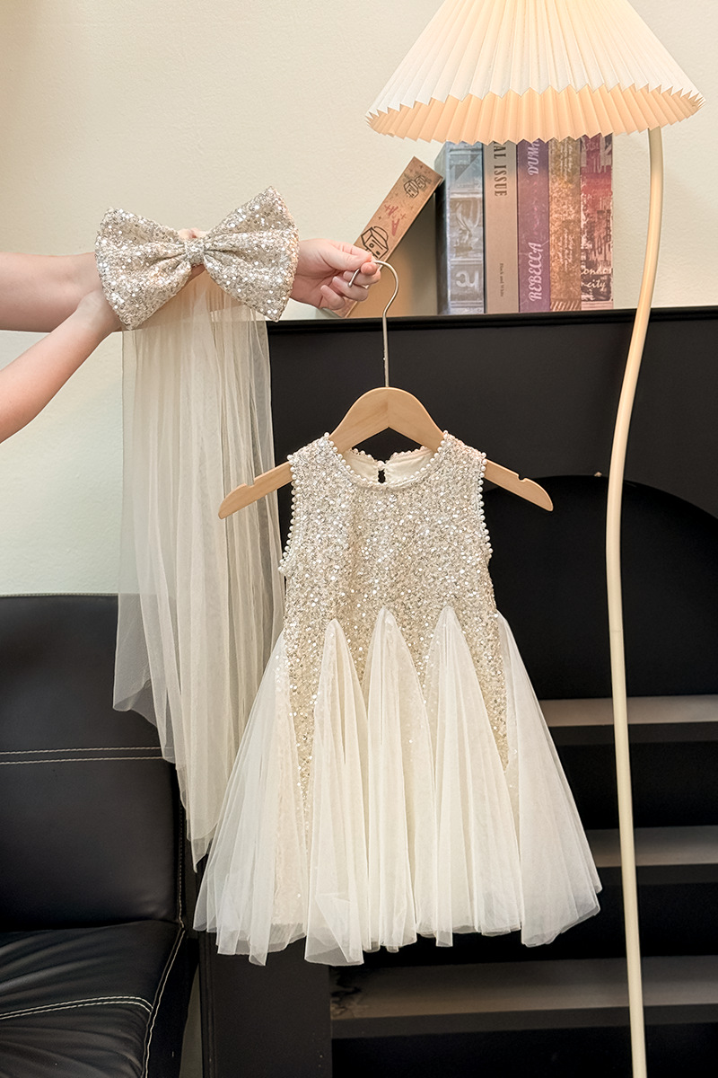 여자 스팽글 공주 드레스 2025 여름 새로운 어린이 드레스 스커트 여름 드레스 유행 소녀 조끼 드레스