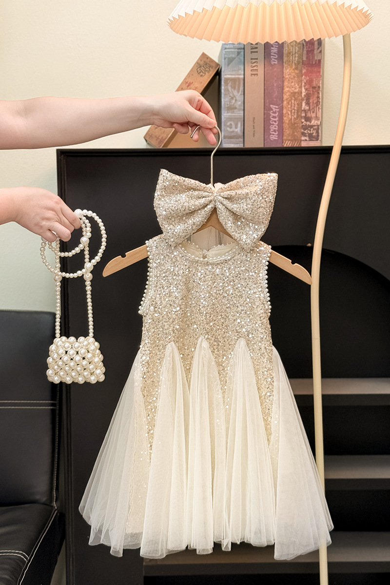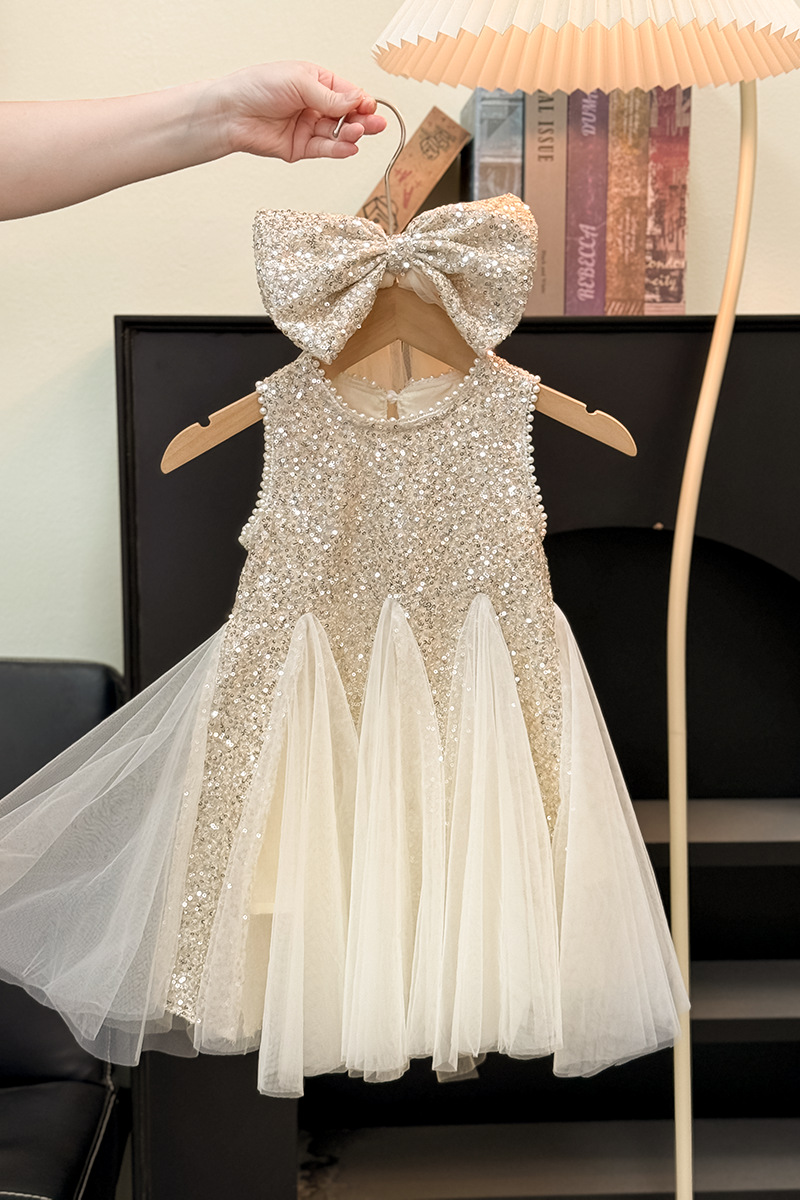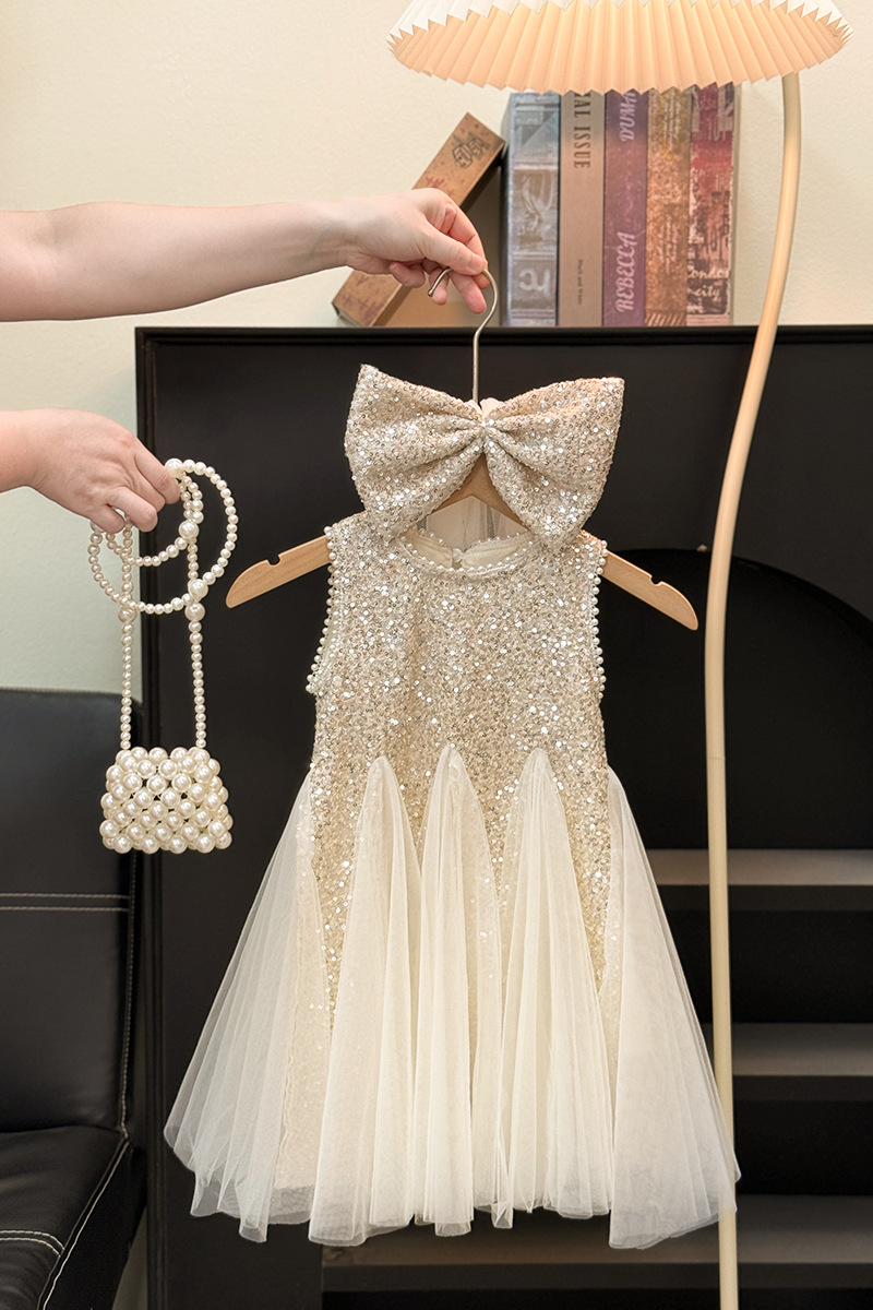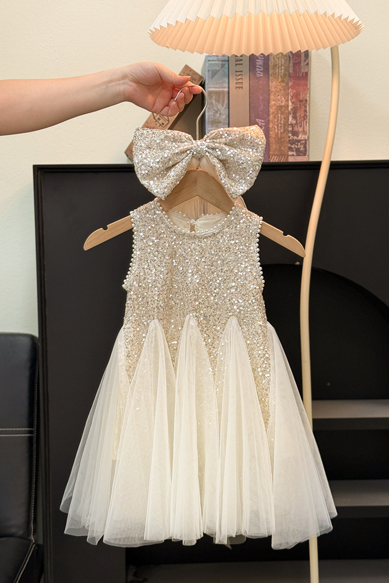 여자 스팽글 공주 드레스 2025 여름 새로운 어린이 드레스 스커트 여름 드레스 유행 소녀 조끼 드레스