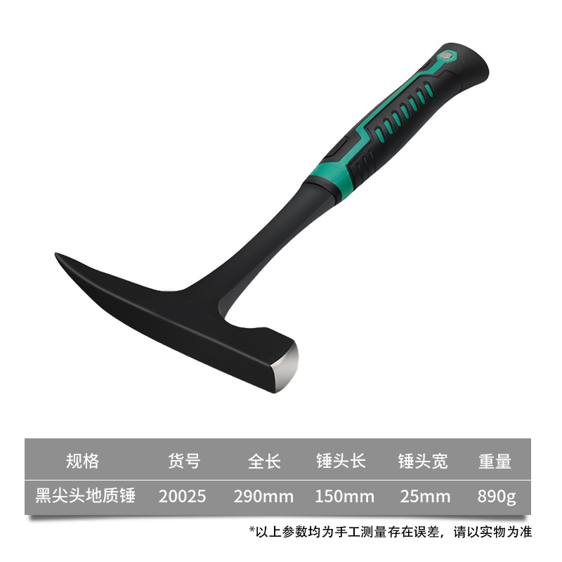 • 녹색 검정색 은색 머리 플랫 헤드 지질 망치
