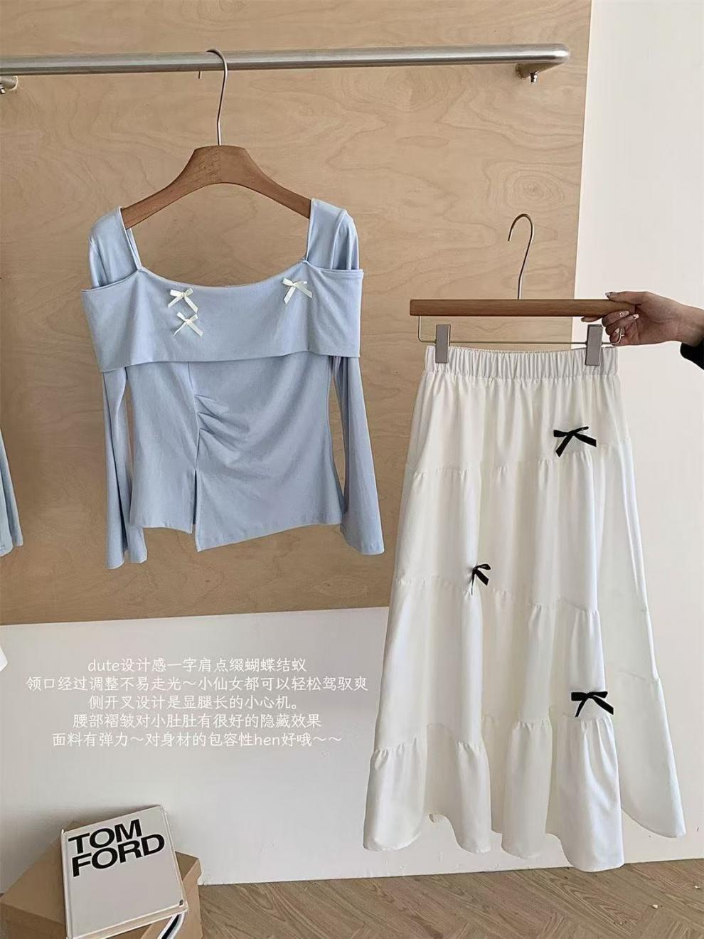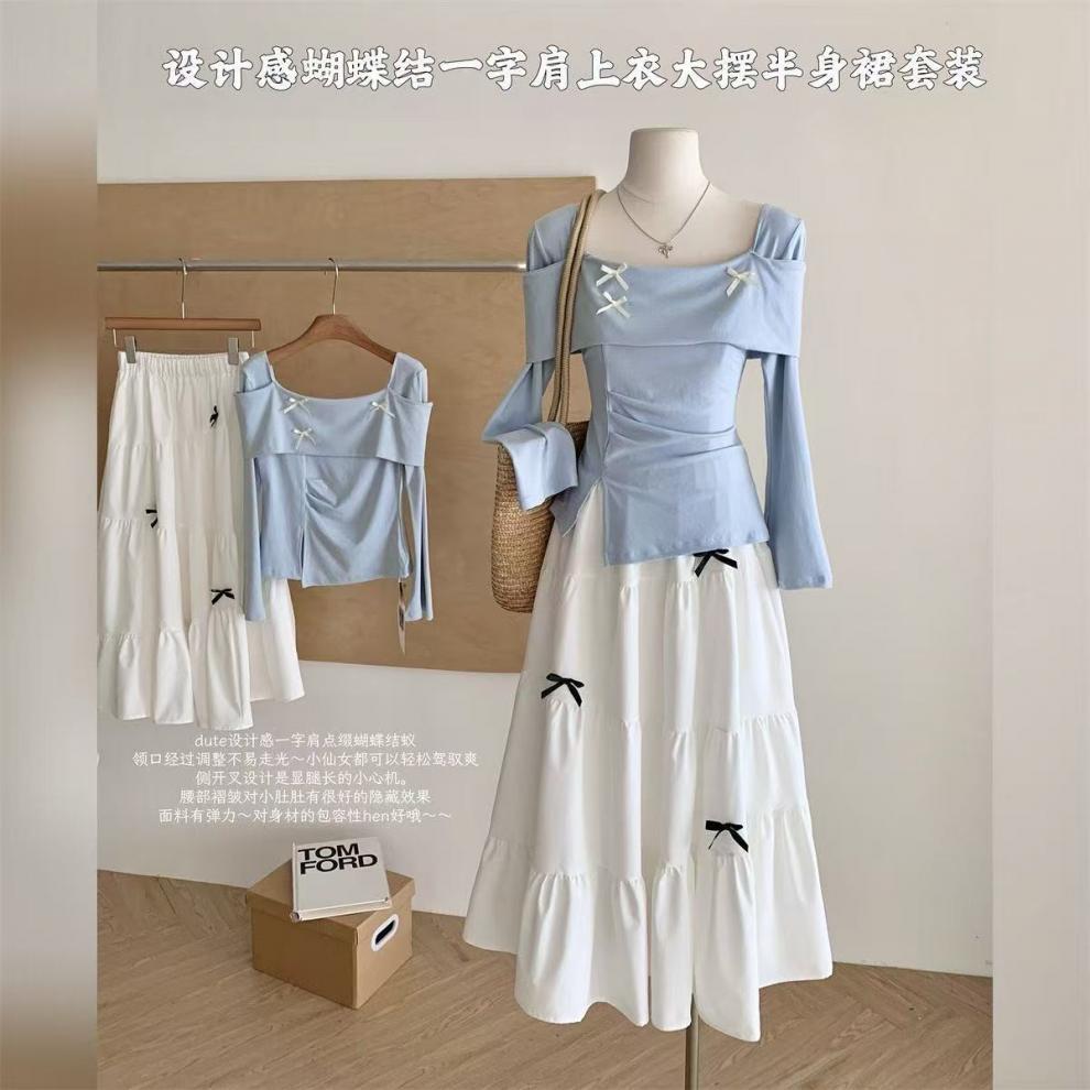 • 화이트 스커트 + 블루 탑 [투피스세트]