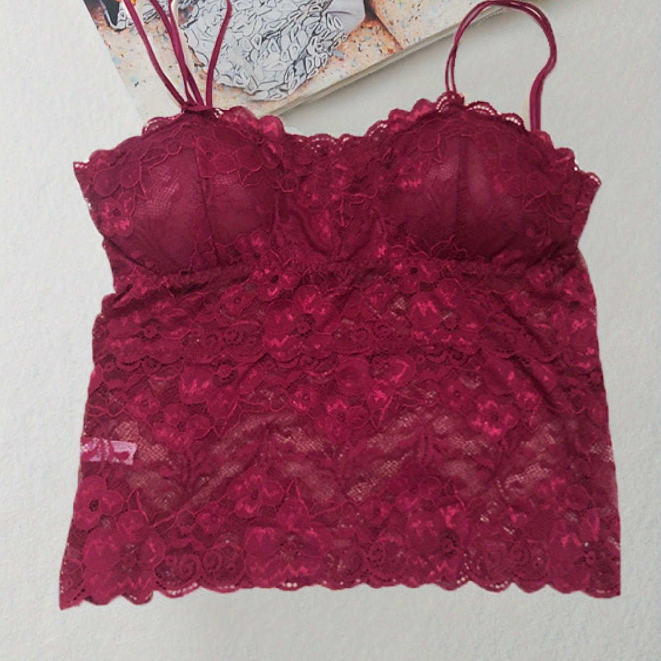여성용 레이스 브라렛 캐미솔 탱크탑 플로럴 프린트 세미