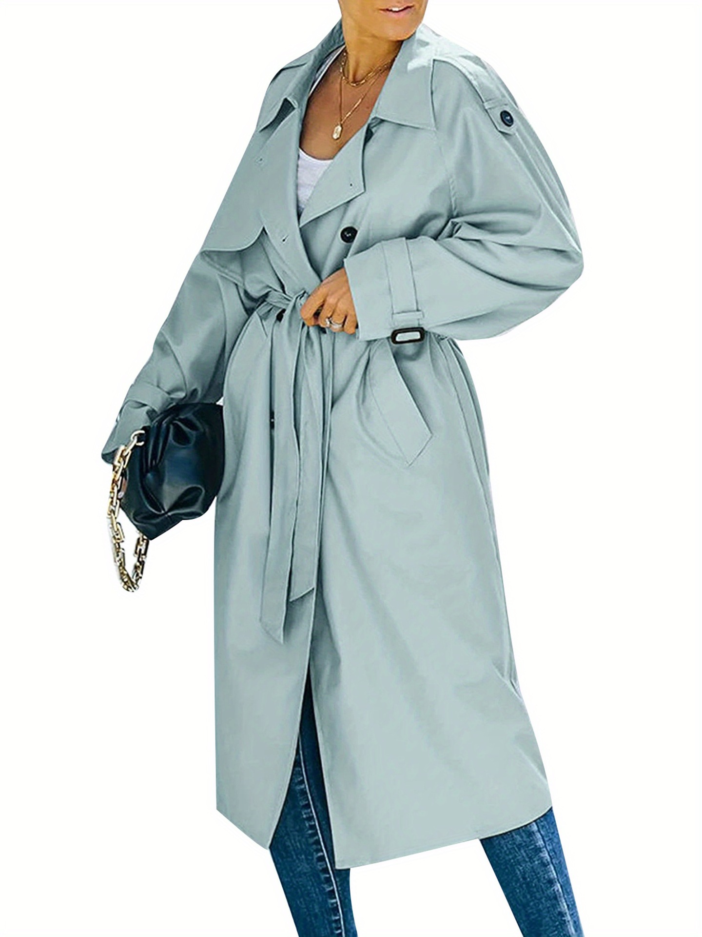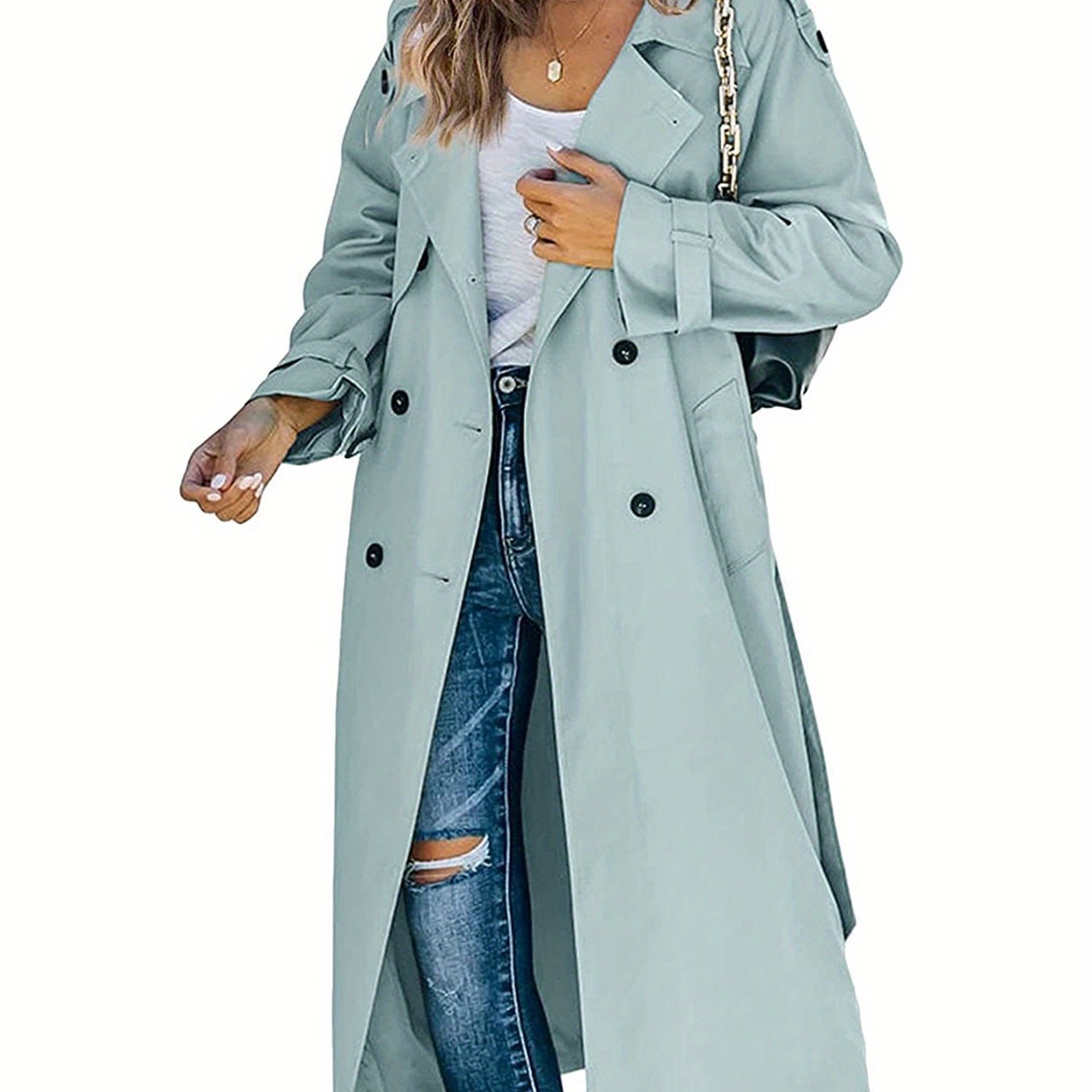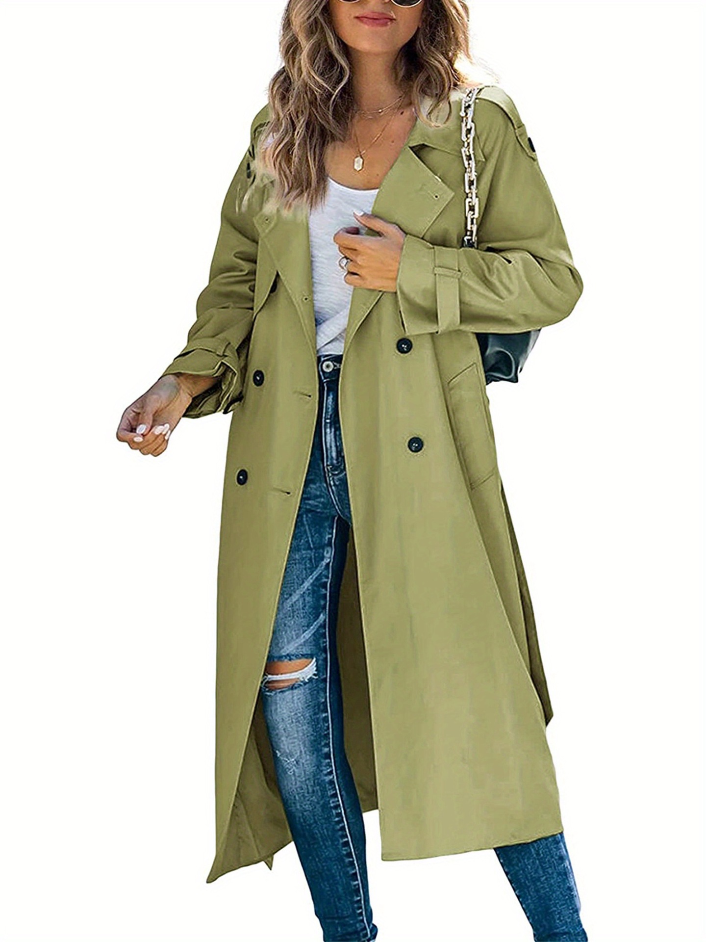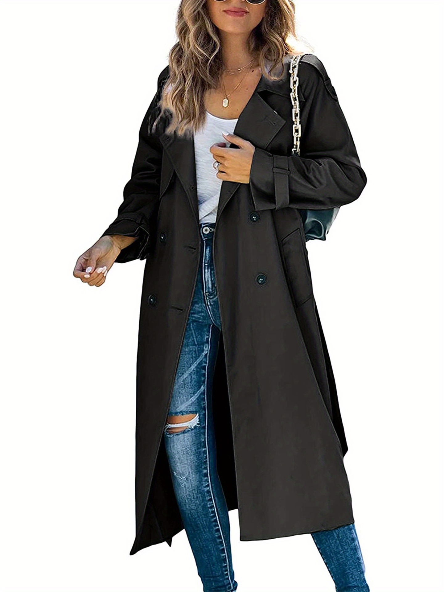 여성용 더블 브레스트 롱 트렌치 코트 클래식 라펠스토어 가기