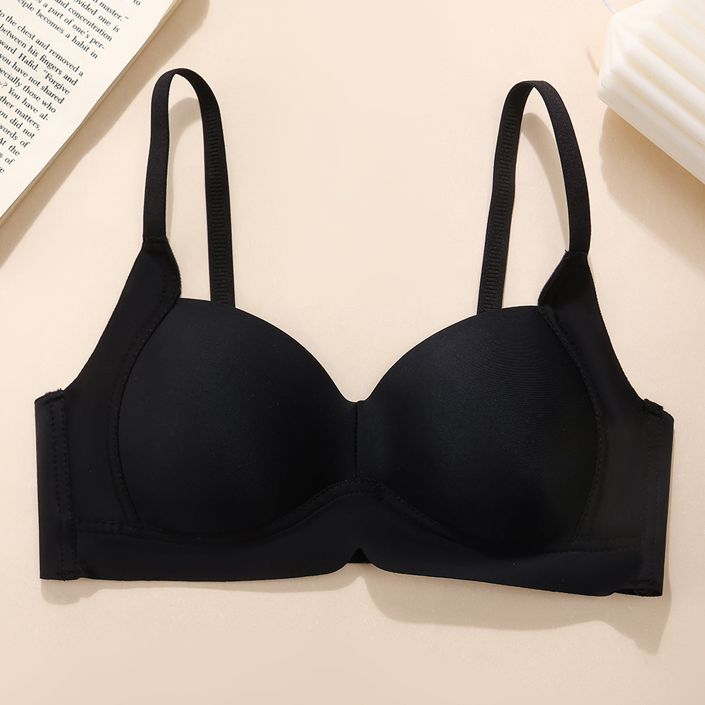 얇은 와이어 프리 솔리드 컬러 작은 가슴 푸시업 소녀 속옷 한국식 심플하고 편안하며 통기성이 좋은 고정 컵 푸시업 브라