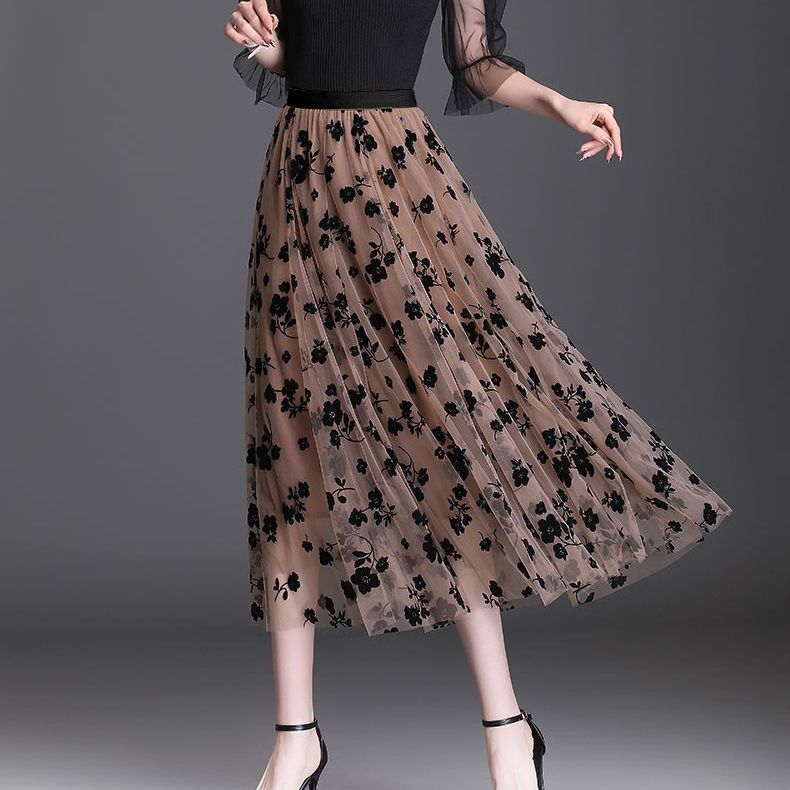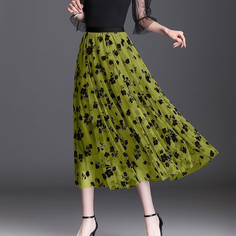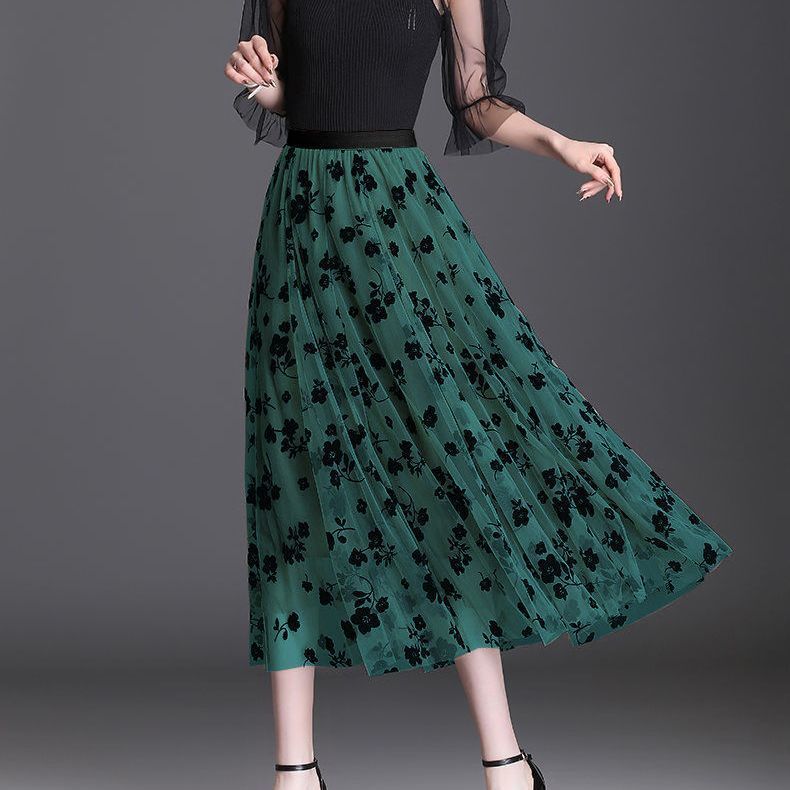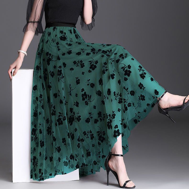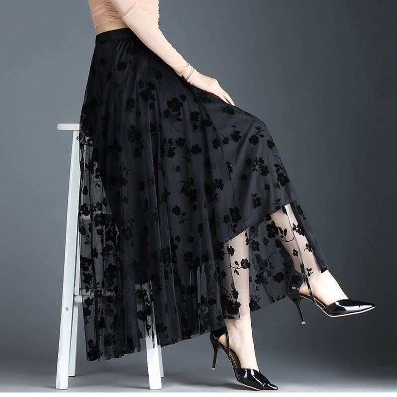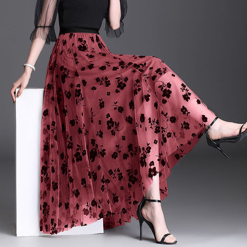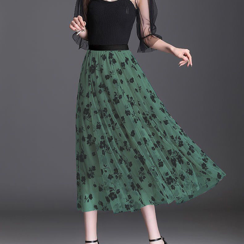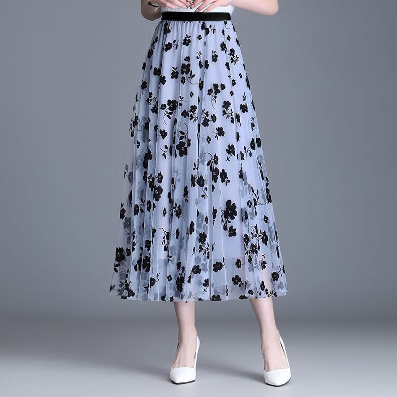 메쉬 스커트, 플록 미드기장 거즈 스커트, 활용도 높은 하이웨이스트 슬리밍 도파민 슈퍼 페어리 스커트, 여름용 라지 스커트