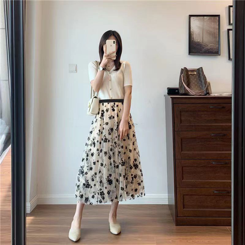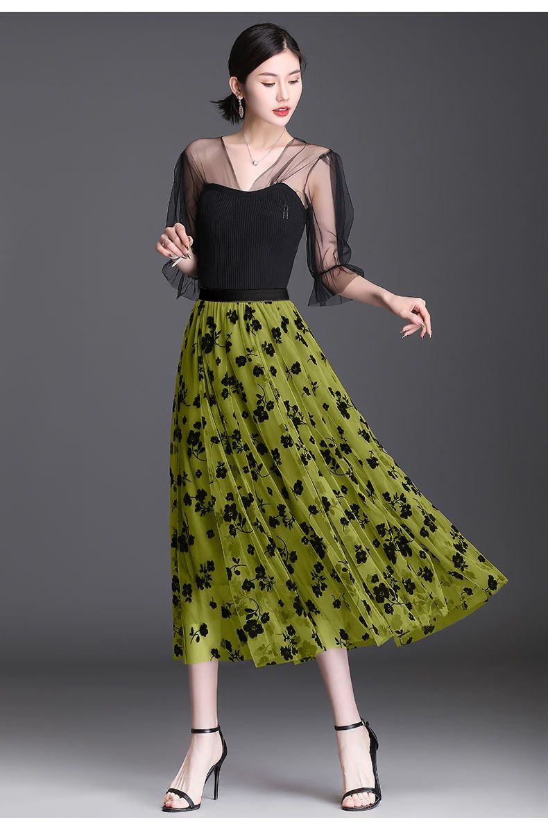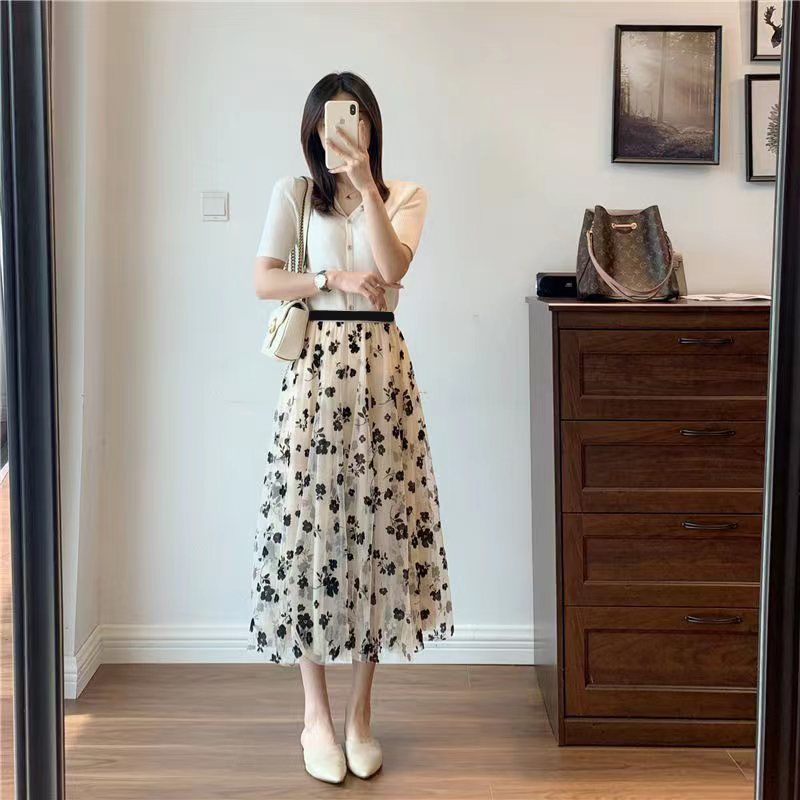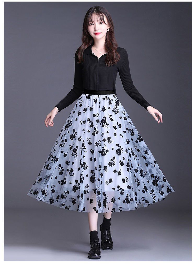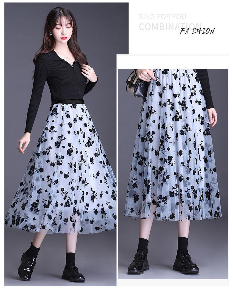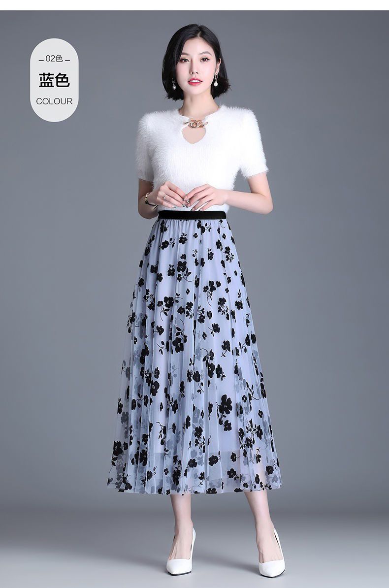 메쉬 스커트, 플록 미드기장 거즈 스커트, 활용도 높은 하이웨이스트 슬리밍 도파민 슈퍼 페어리 스커트, 여름용 라지 스커트