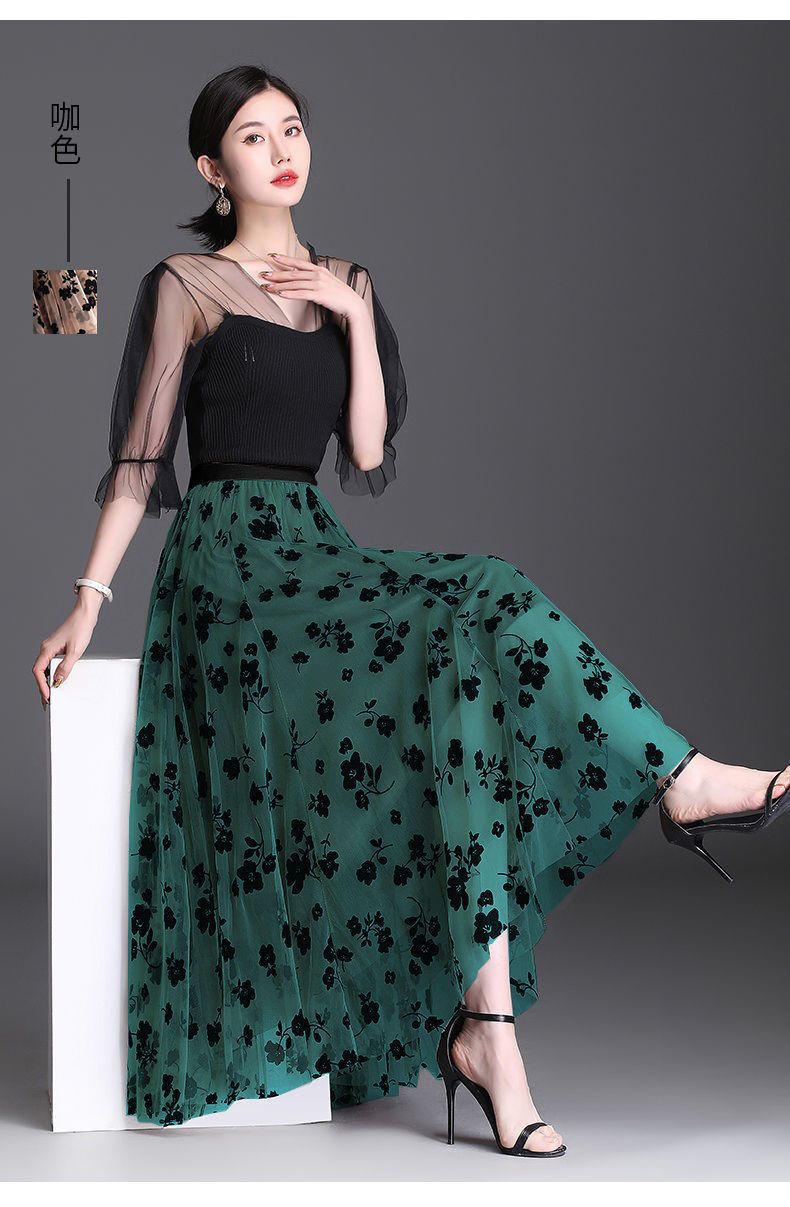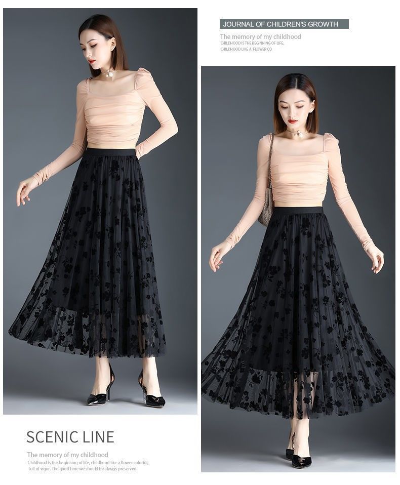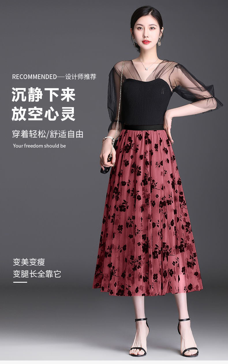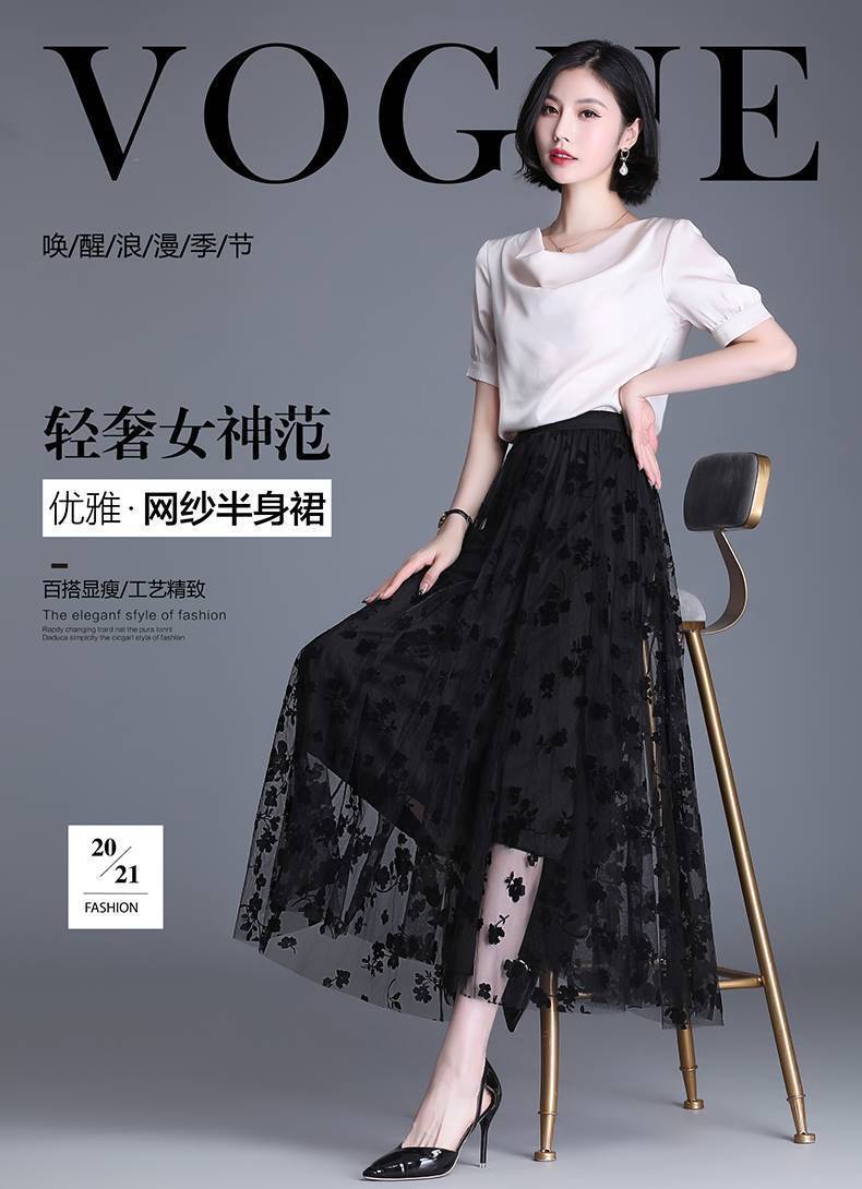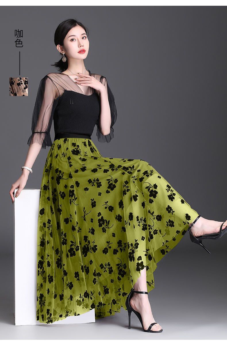 网纱半身裙植绒中长款纱裙百搭高腰显瘦多巴胺超仙半身裙夏季大摆
