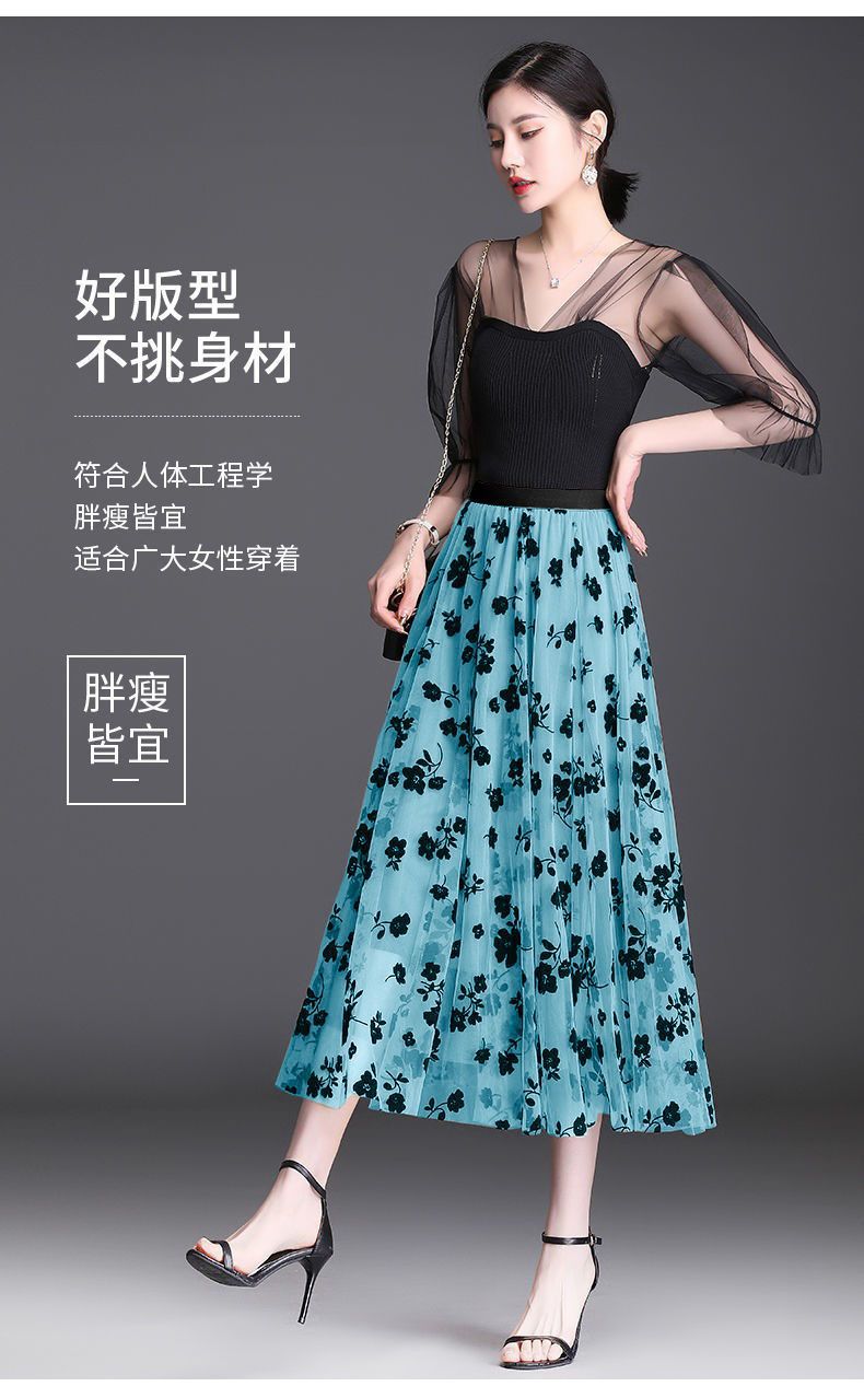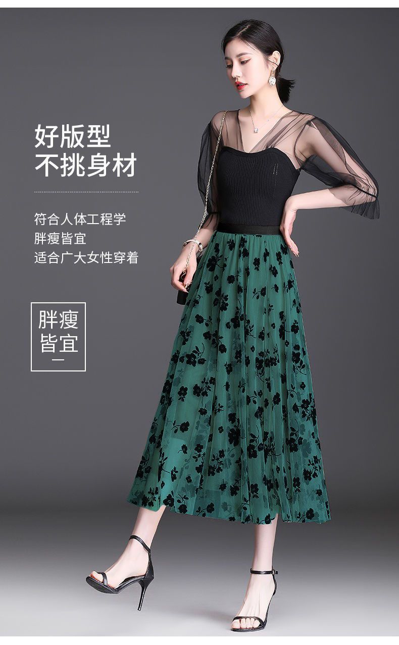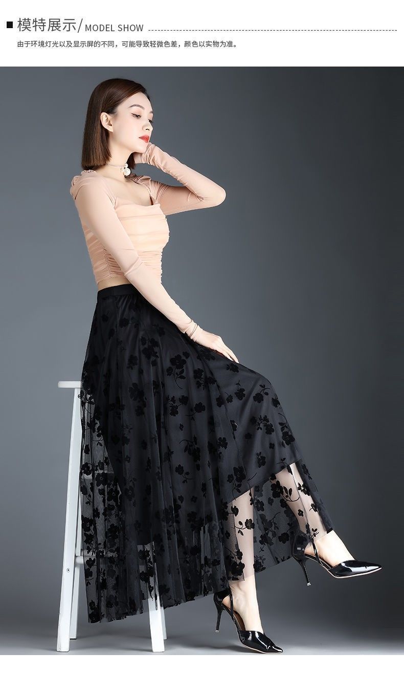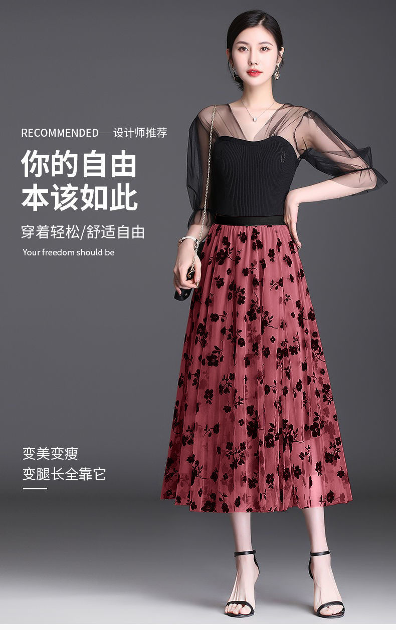 网纱半身裙植绒中长款纱裙百搭高腰显瘦多巴胺超仙半身裙夏季大摆