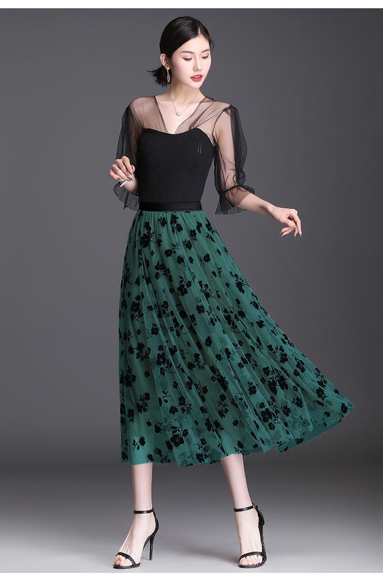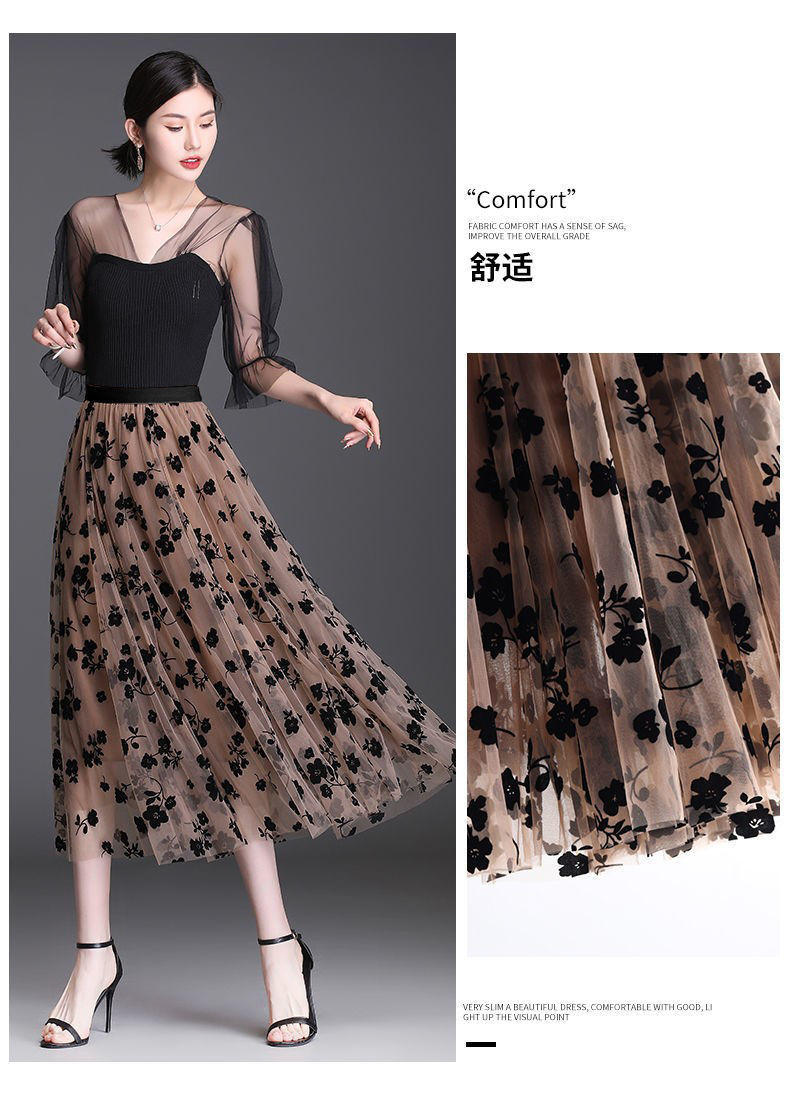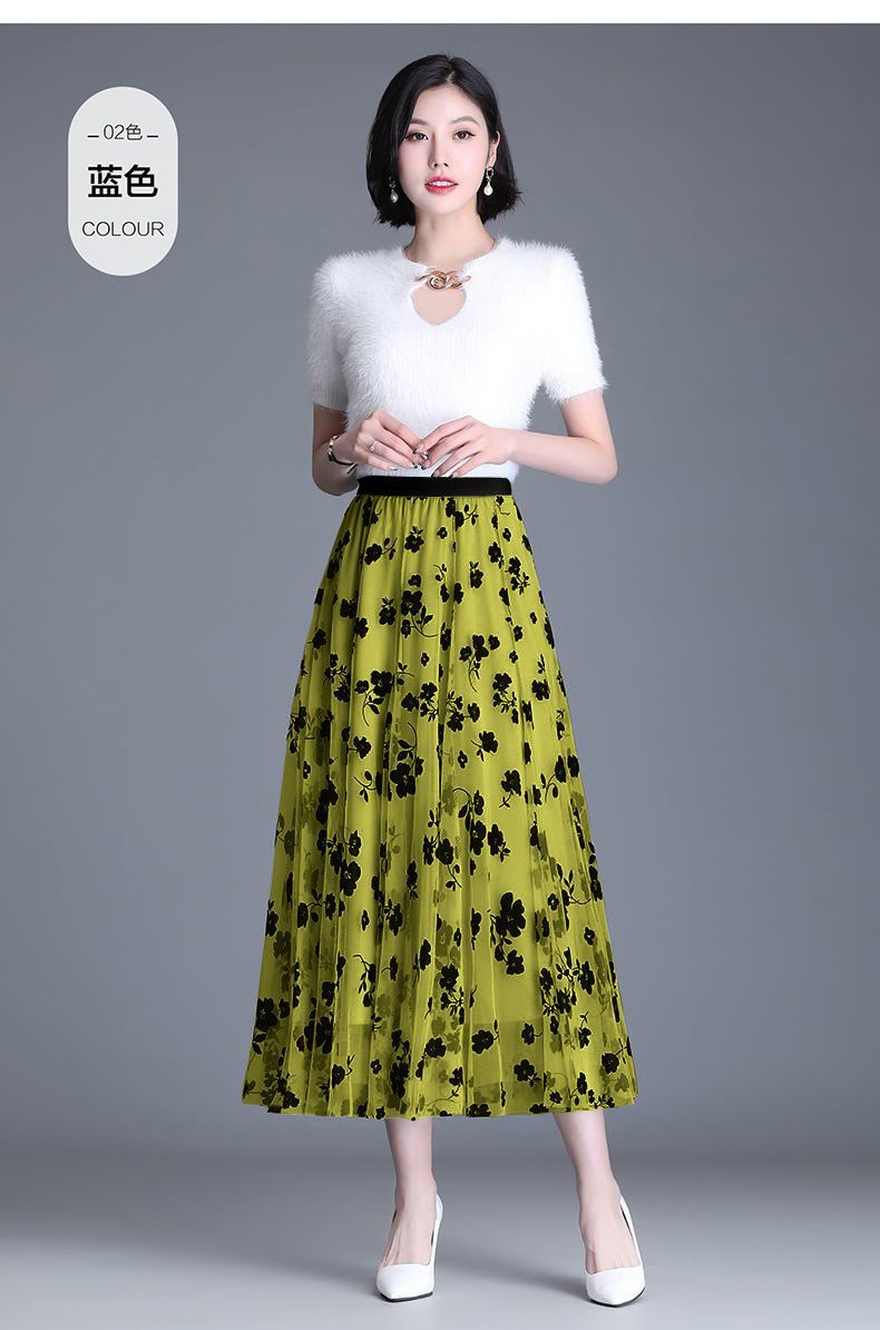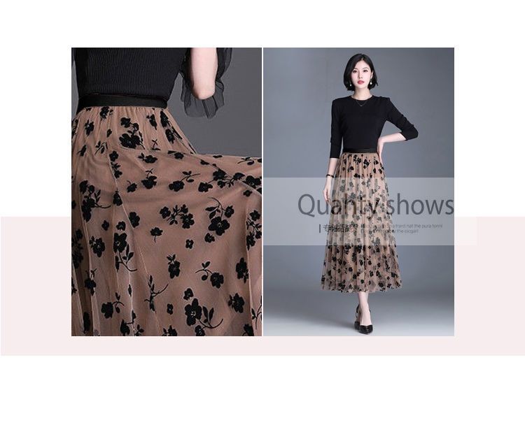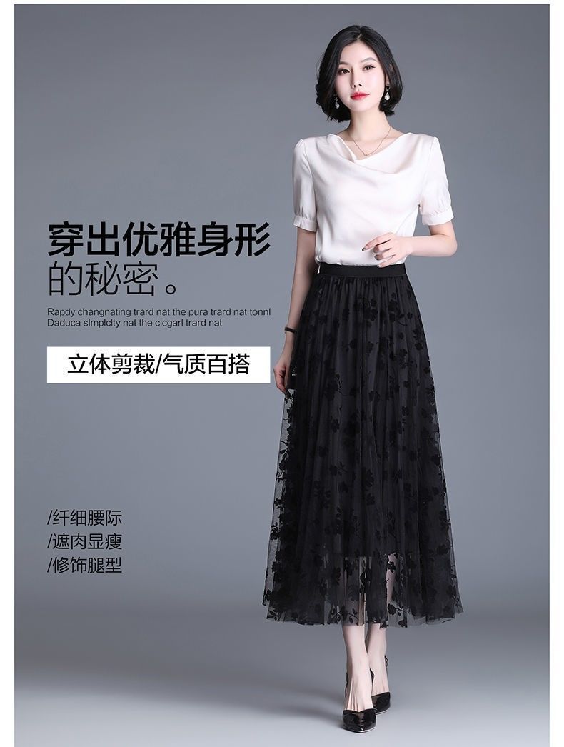 网纱半身裙植绒中长款纱裙百搭高腰显瘦多巴胺超仙半身裙夏季大摆