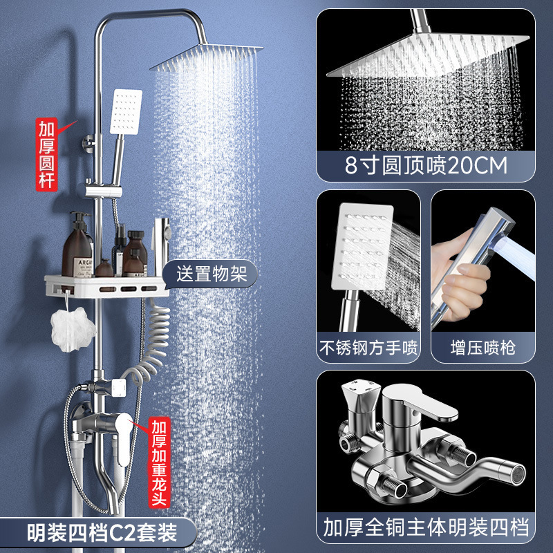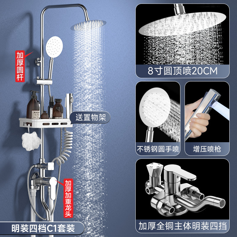 • 노출된 구리 4단 수전 + 8inch 방폭 돔 스프레이 + 304 스테인레스 스틸 핸드 스프레이