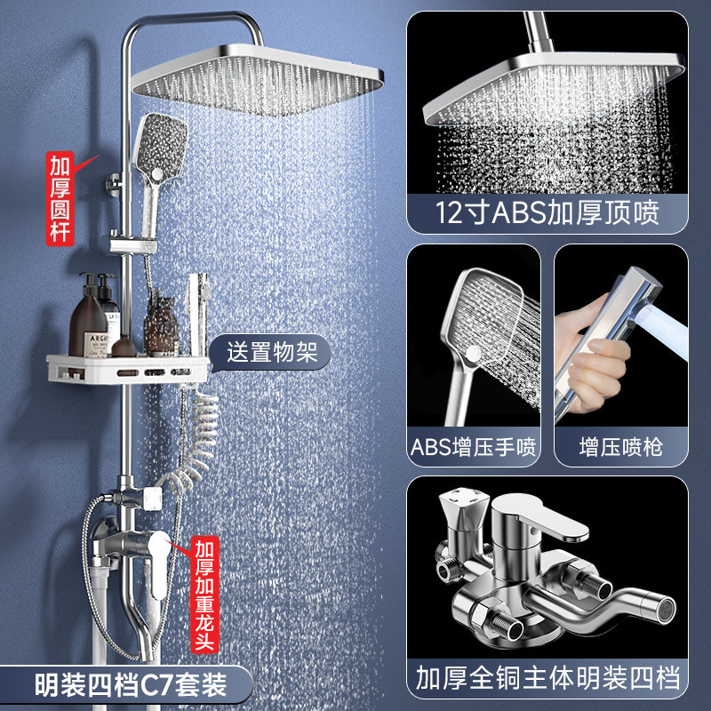 • C7 표면 장착형 4기능 두꺼운 구리 수도꼭지 × 12inch 확대되고 두꺼워진 슈퍼차지 핸드 탑 스프레이