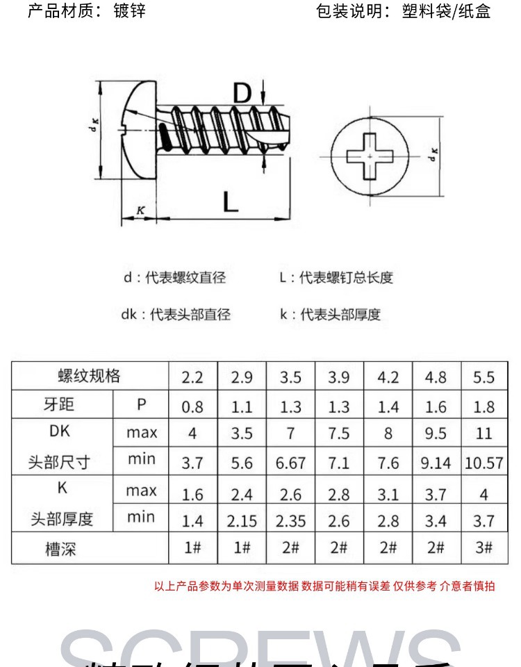 열처리 아연 도금 둥근 머리 십자형 플랫 테일 셀프 태핑 나사 팬 헤드 GB845 나사 B형 셀프 태핑 M3--M5