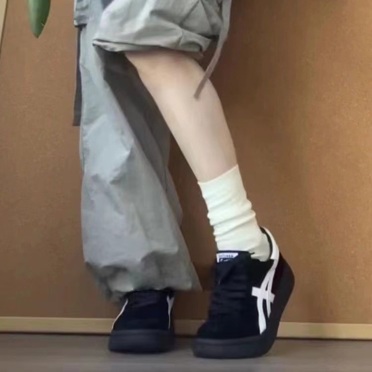 2025 봄 신상품 발을 보여주는 작은 두꺼운 밑창 운동화, 복고풍 스포츠 캐주얼 신발, 여학생을 위한 둥근 발가락 배색 육군 훈련 신발스토어 가기